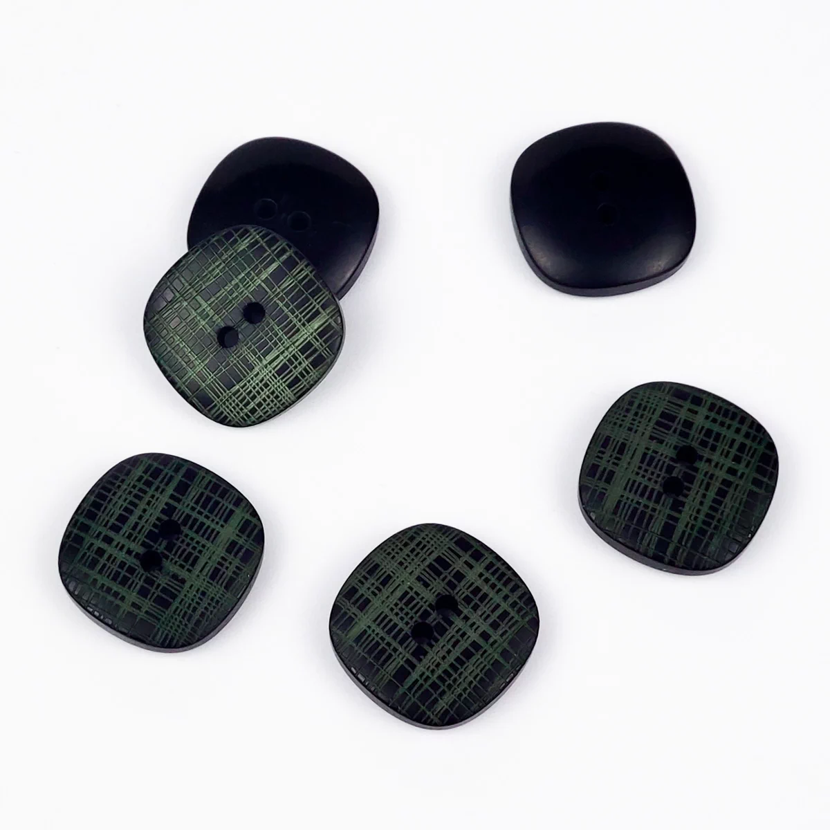 Пуговицы, Union Knopf, "Насечка сеткой", 4 отв., пластик, цвет черный/зеленый, 20 мм. Арт. 48657 20 54.