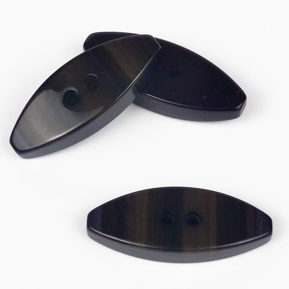 Пуговицы, Union Knopf, "Пальтовые, эллипс", глянец, в полоску, 2 отв., пластик, цвет черный, 41 мм.