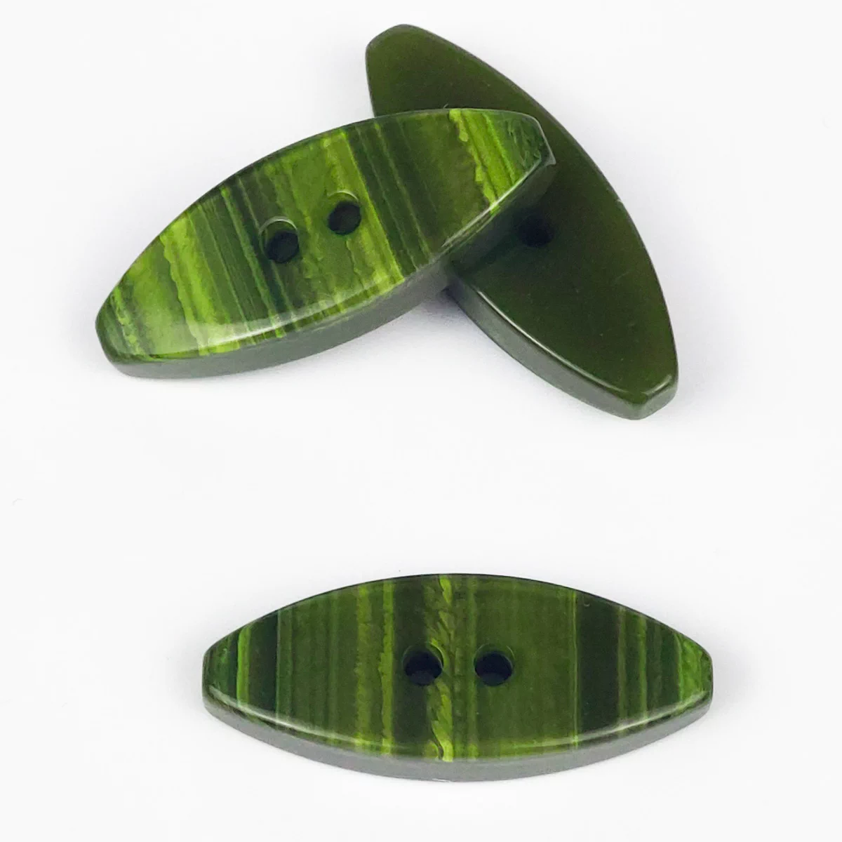 Пуговицы, Union Knopf, "Пальтовые, эллипс", глянец, в полоску, 2 отв., пластик, цвет зеленый, 41 мм.