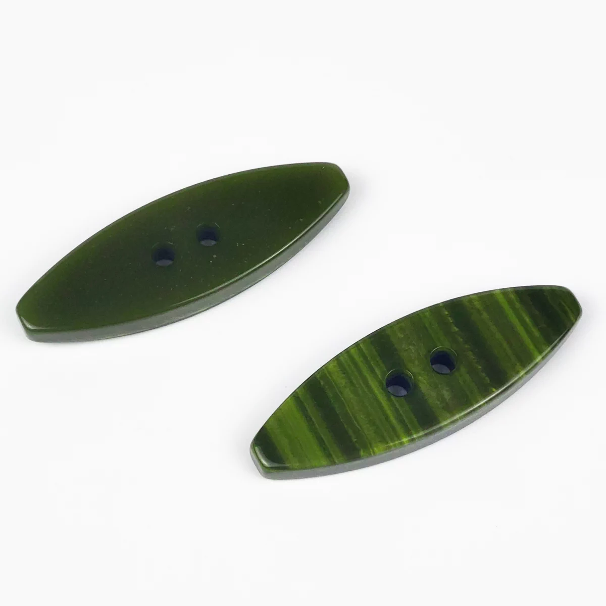 Пуговицы, Union Knopf, "Пальтовые, эллипс", глянец, в полоску, 2 отв., пластик, цвет зеленый, 70 мм.
