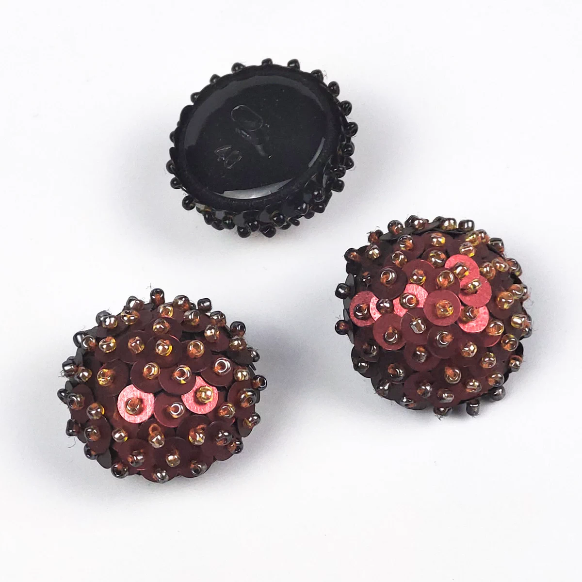 Пуговицы, Union Knopf, "Пайетки и бисер", на ножке, пластик/ткань/бисер, цвет бордо, 27 мм.