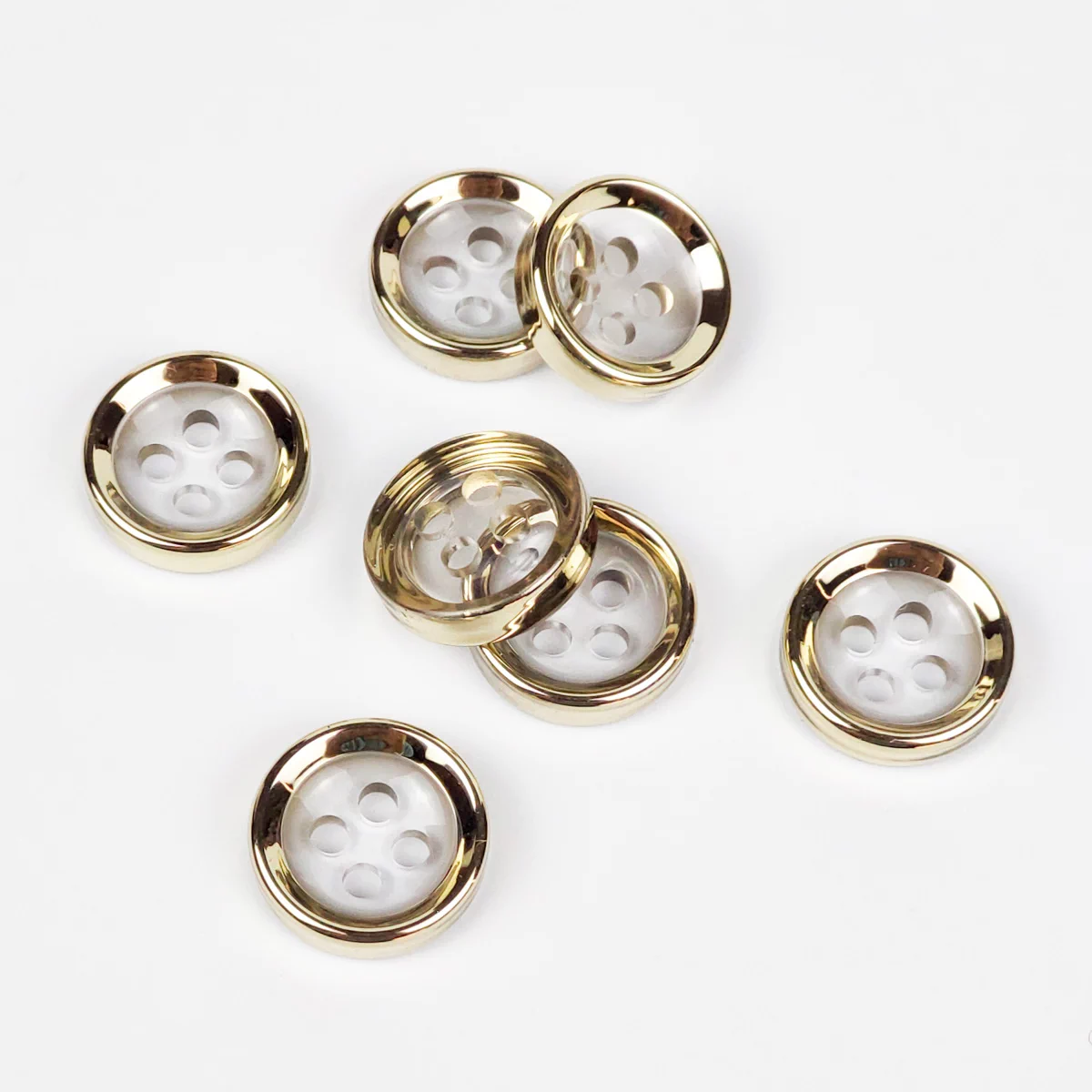 Пуговицы, Union Knopf, "Круглые, прозр. с цв. ободком", 4 отв., пластик, цвет золото, 18 мм.