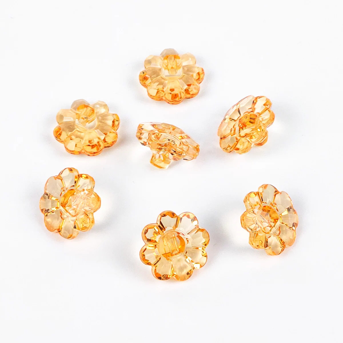 Пуговицы, Union Knopf, "Ромашка прозрачная", на ножке, пластик, цвет оранжевый, 15 мм.