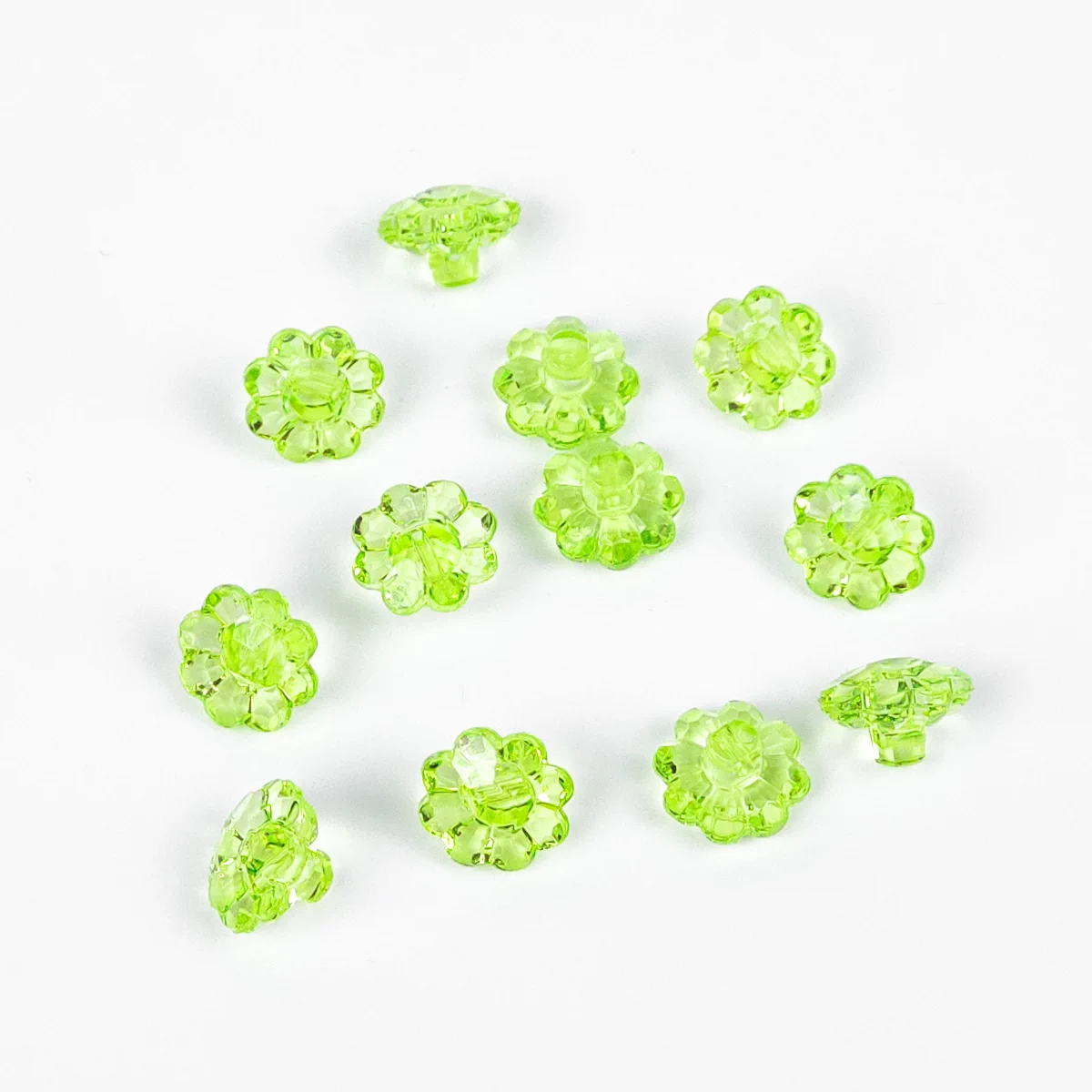 Пуговицы, Union Knopf, "Ромашка прозрачная", на ножке, пластик, цвет зеленый, 11 мм.