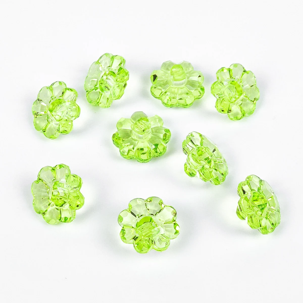 Пуговицы, Union Knopf, "Ромашка прозрачная", на ножке, пластик, цвет зеленый, 15 мм.