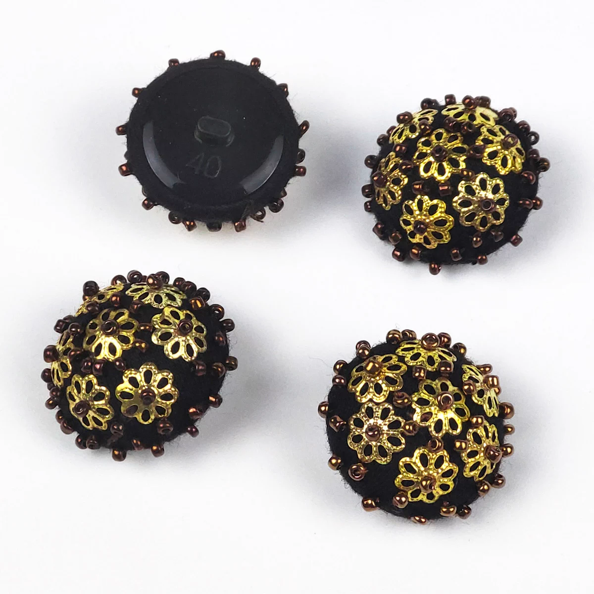 Пуговицы, Union Knopf, "Цветы бисер", на ножке, пластик/ткань/бисер/металл, цвет коричн, 28 мм.