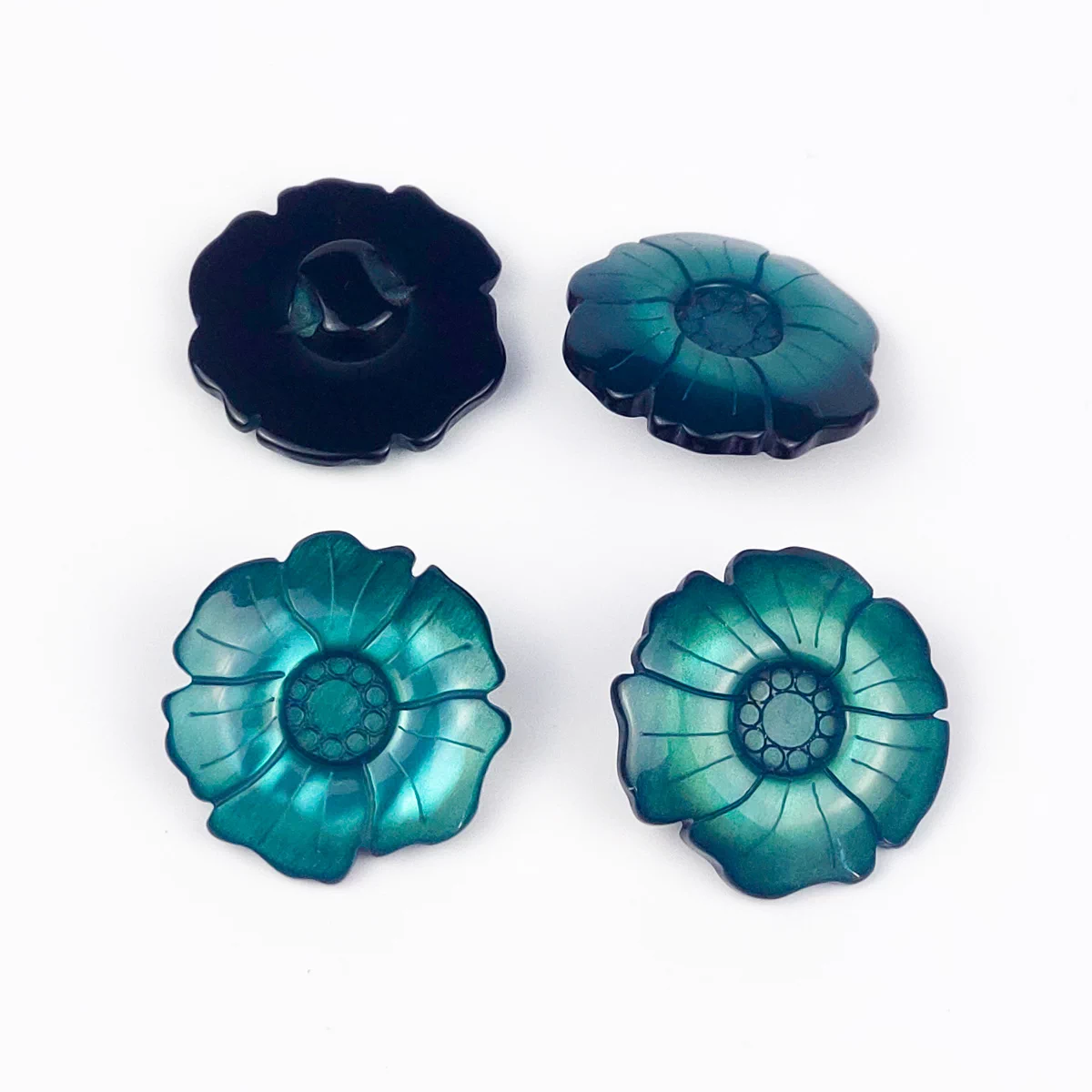 Пуговицы, Union Knopf, "Цветок перелив", на ножке, пластик, цвет малахитовый, 23 мм.