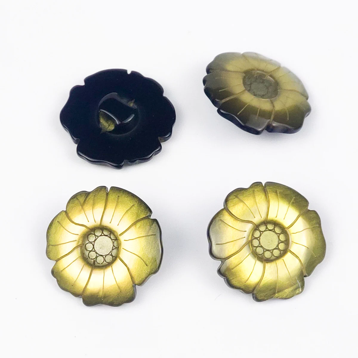 Пуговицы, Union Knopf, "Цветок перелив", на ножке, пластик, цвет оливковый, 23 мм.