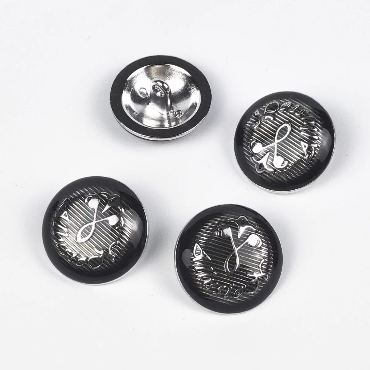 Пуговицы, Union Knopf, "Вензель, с эмалью, круглые", на ножке, металл, черный/серебро, 23 мм.