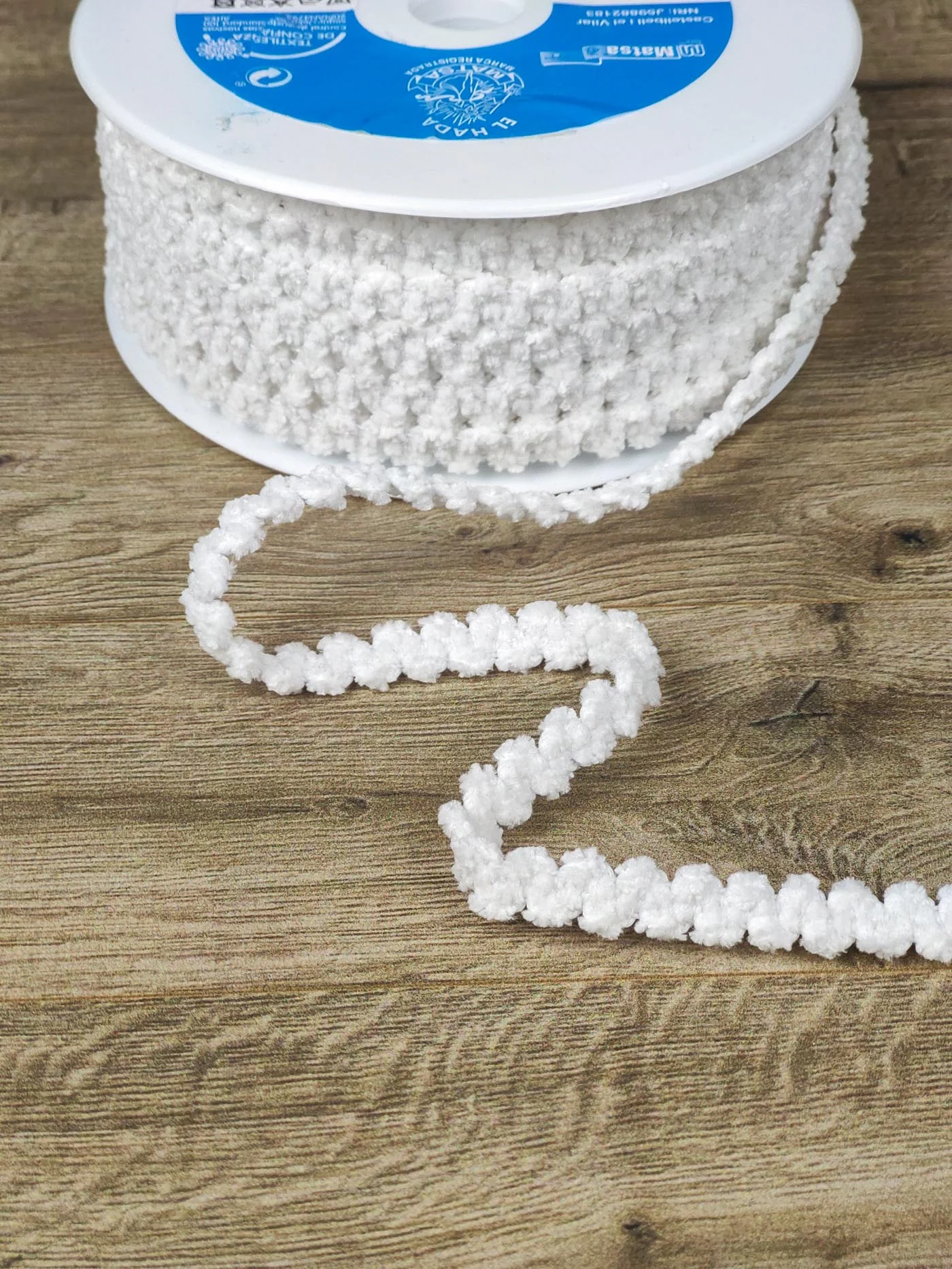 Эластичная тесьма с эффектом шенилл, прочного окраса, мягкая и фактурная. Применяется для декорирование женской и детской одежды из трикотажа.