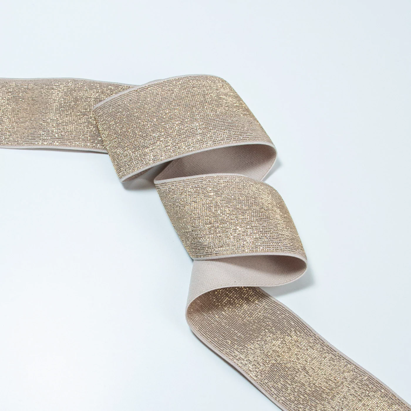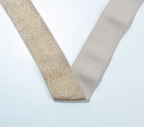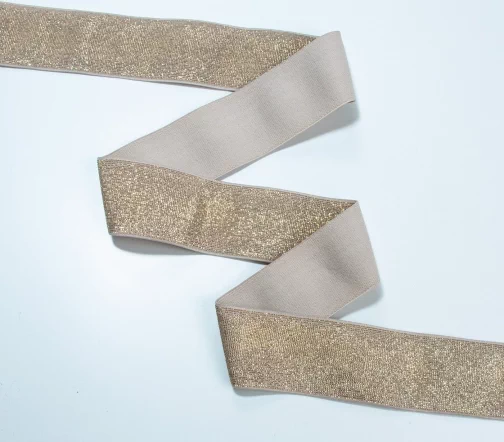 Резинка-пояс эластичный с люрексом MATSA, цвет бежевый с золотом 8038, 40 мм