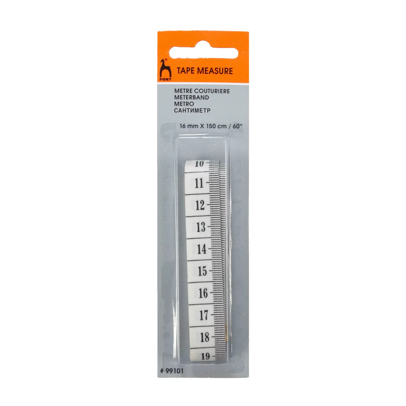 Лента Pony 'Tape Measure' толщиной 16 мм и длиной 150 см имеет двустороннюю шкалу для измерения в сантиметрах или дюймах. Гибкая лента-сантиметр - неотъемлемый атрибут в любом хозяйстве, будь то домашний уголок рукоделия, ремонт обуви, швейное ателье или мастерская кутюрье. С помощью этого простого и понятного инструмента можно легко снять мерки с заказчика, отмерить нужное количество ткани при раскройке, а также определить длину чего-либо в различных бытовых нуждах.