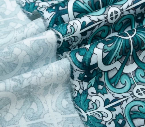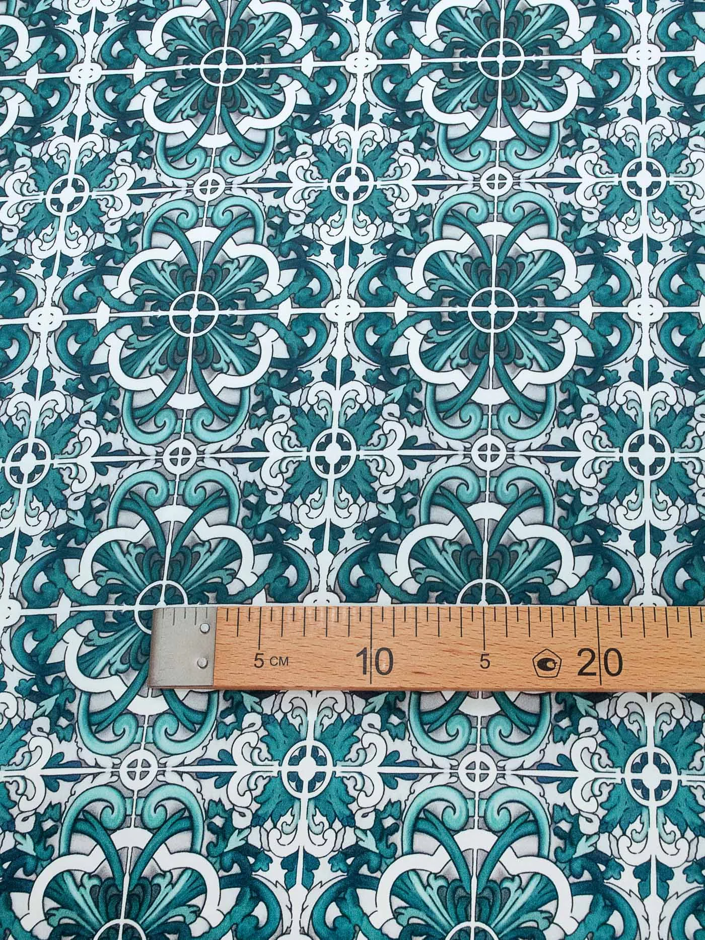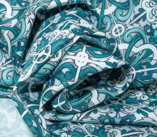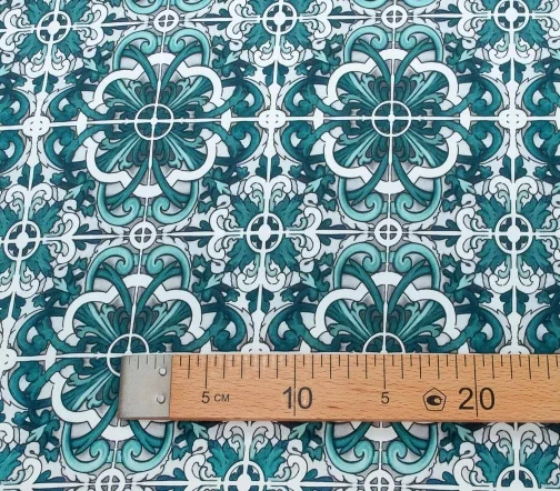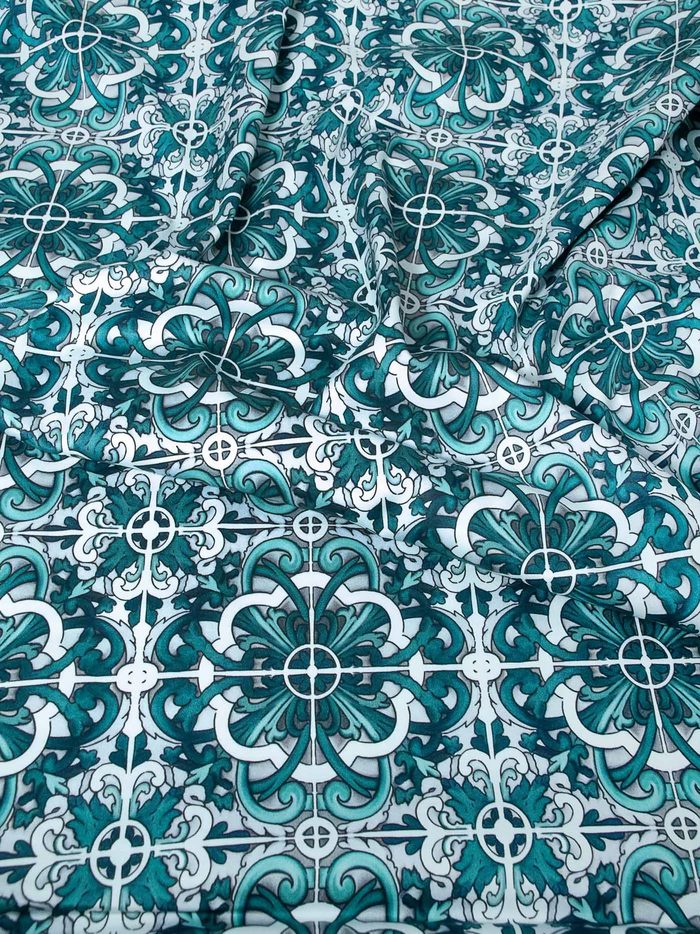 Фрагмент 15,0см х 15,0см. Хлопковый сатин из коллекции Dolce Gabbana Majolica, оттенки зеленого.