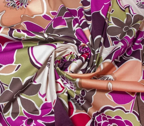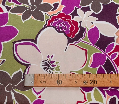 Крупный, сочный, цветочныйпринт. В платье из такой ткани Вы не останетесь не замеченной. Сатин отлично подходит для пошива летних изделий.