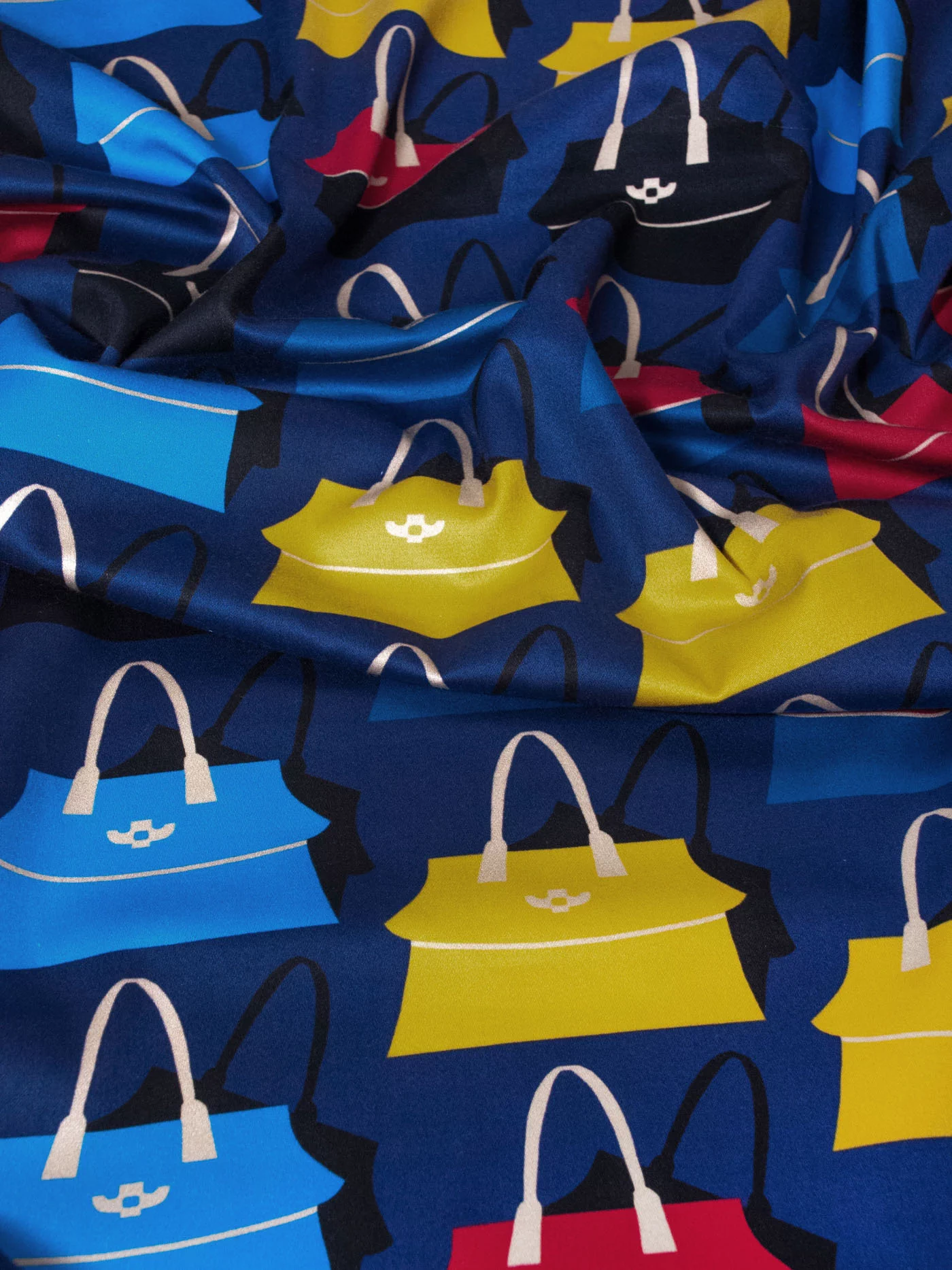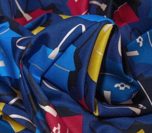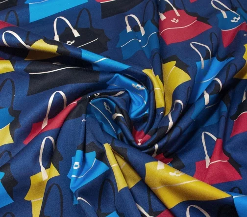 Сатин изумительный по качеству и тактильным ощущением. Средней плотности, пластичный за счет содержания эластана в ткани. Лицевая сторона матовая. Принт сумочки 9,0 х 10,0 см.