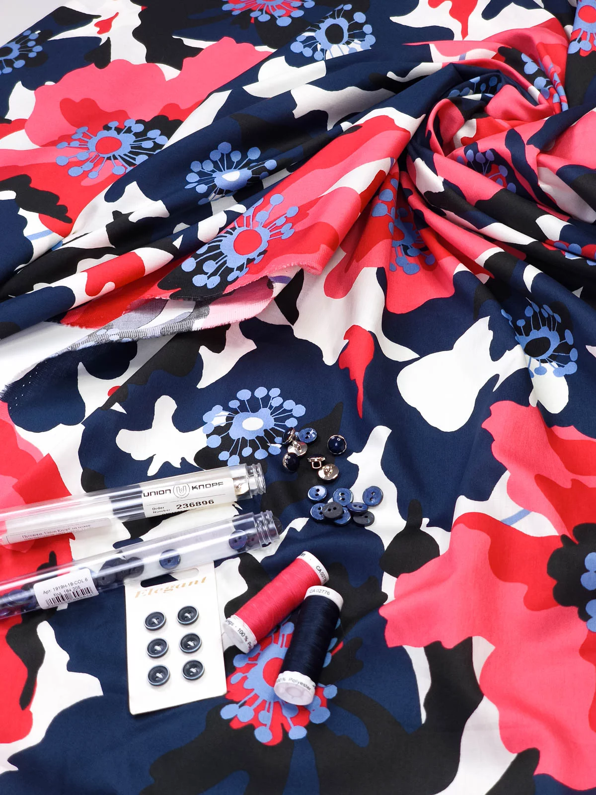Чудесный итальянский сатин с дизайнерским принтом. Стильный, качественный и натуральный материал для летних платьев, рубашек, платьев-рубашек и топов. Очень приятный тактильно, отлично драпируется, средней плотности.