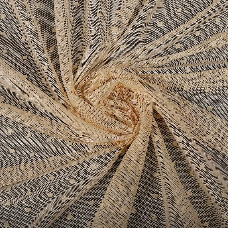 Лёгкая сетчатая ткань изготавливается из тонкой нейлоновой нити с добавлением эластичных волокон – спандекса. Материал похож на тюль и другие сетчатые ткани, но имеет более равномерную и гладкую структуру, устойчив к сминанию. Благодаря сетчатой структуре он не загрязняется, сохраняет форму даже после намокания и быстро высыхает.