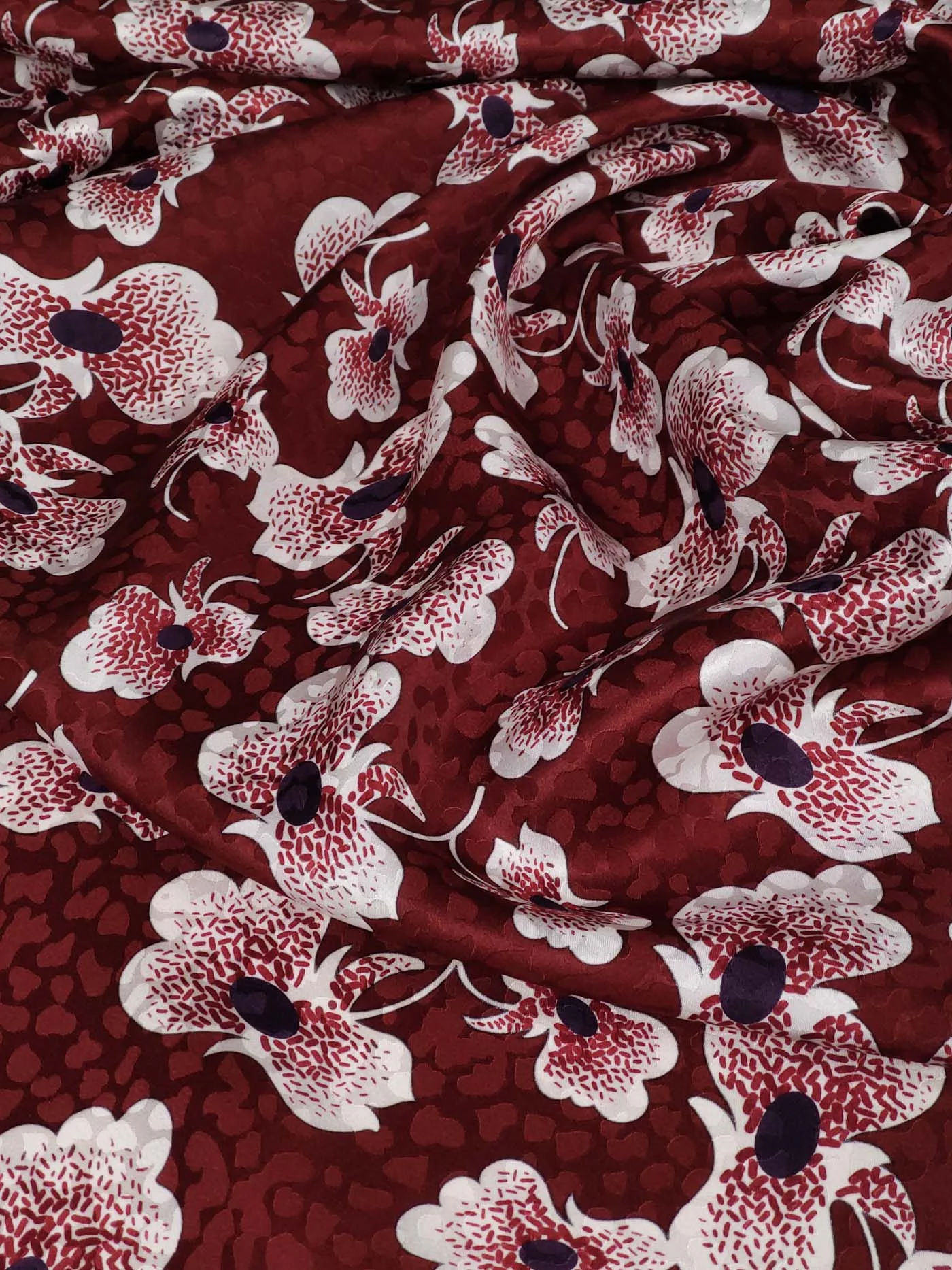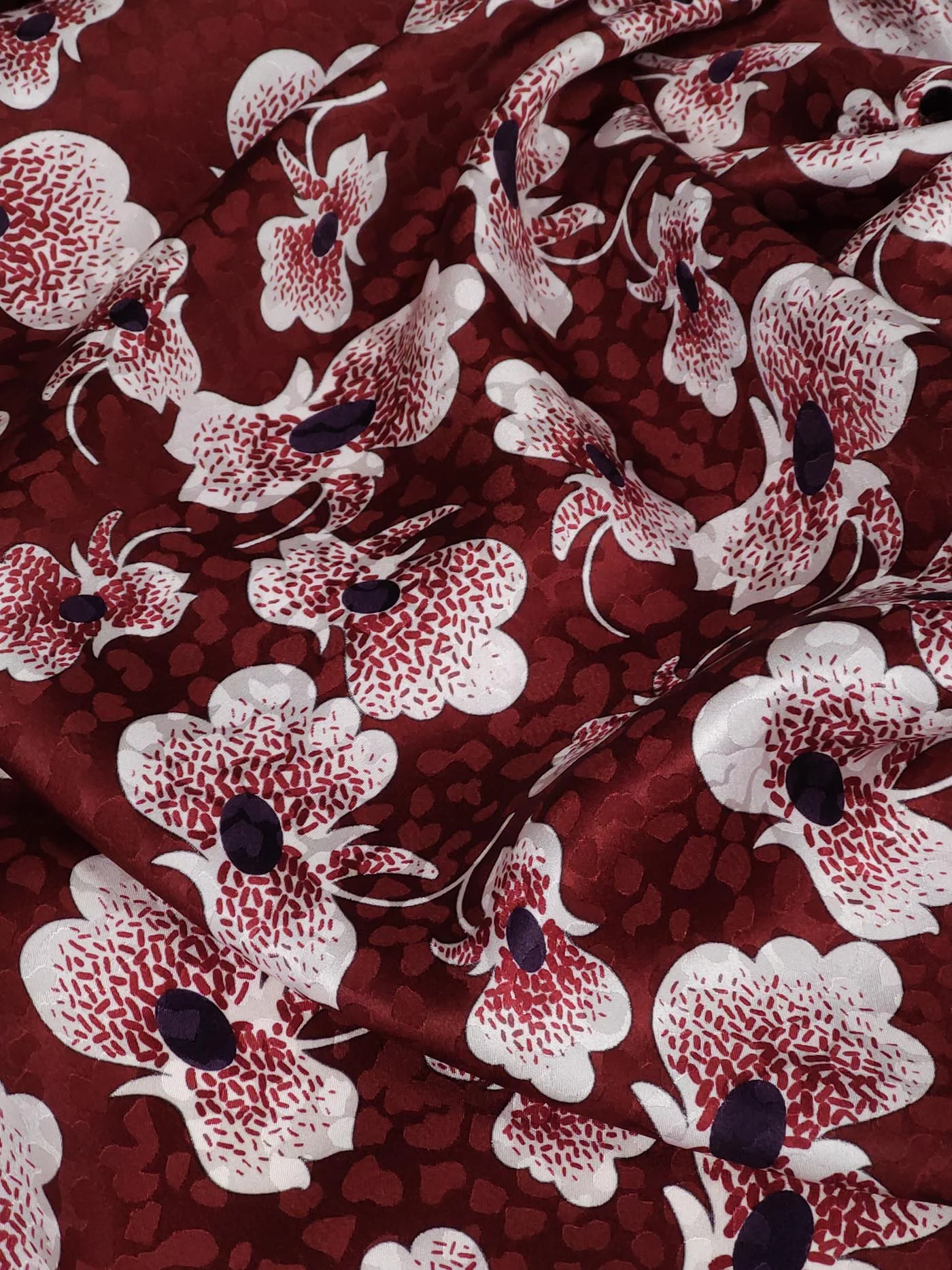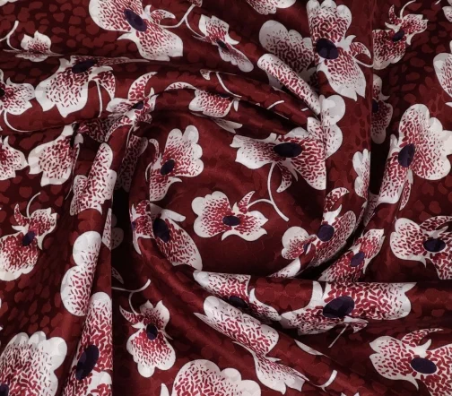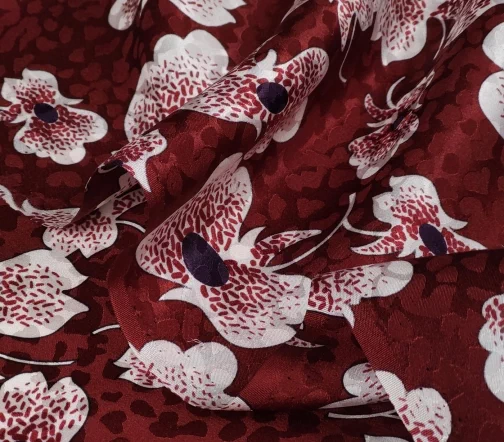 Красивейший шелк средней плотности с элегантной, играющей на свету, рельефной жаккардовой фактурой. Идеален на летящие силуэты, блузы с оборками, пышные юбки.