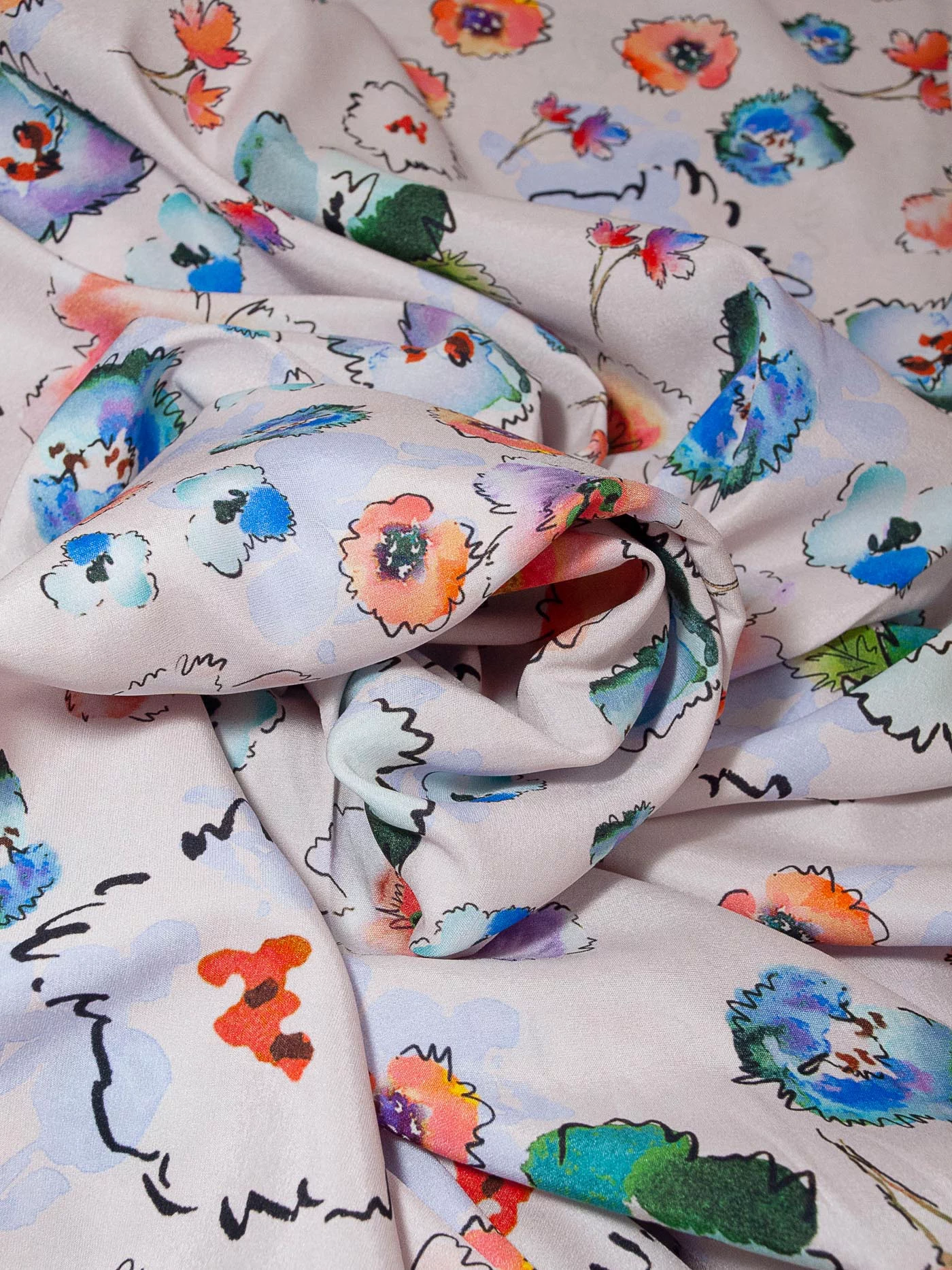 Изумительного качества креповый шелк с эластаном. Лицевая сторона матовая, изнаночная с атласным блеском.