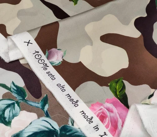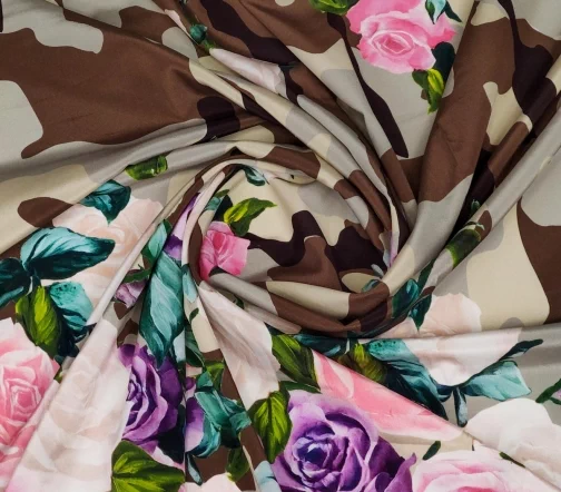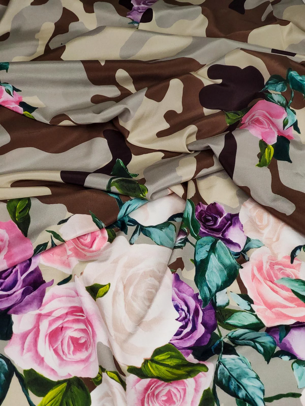 Принт в смелом стиле Милитари и шикарными розами. Высота купона 140 см. Кайма с розами - 40-45см.