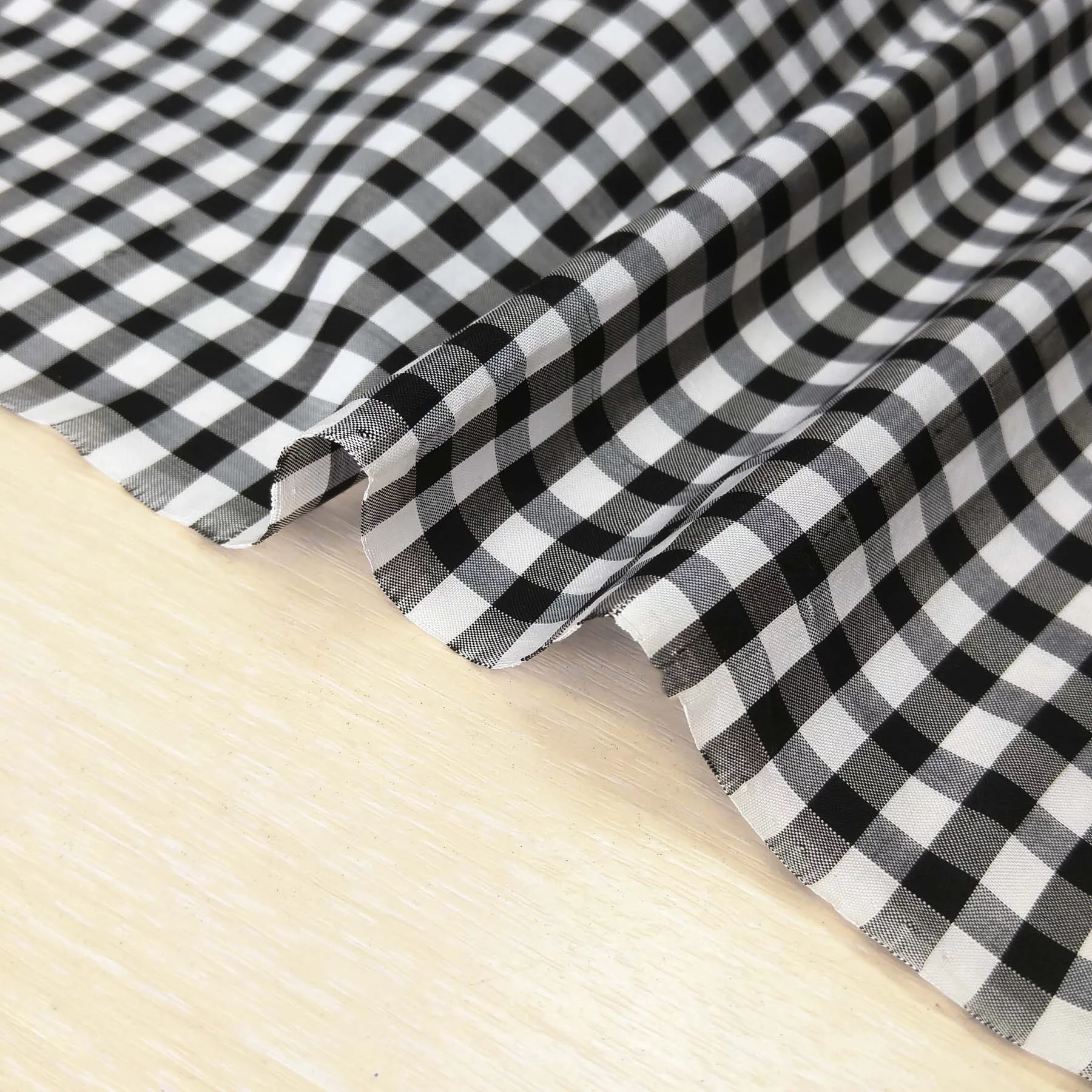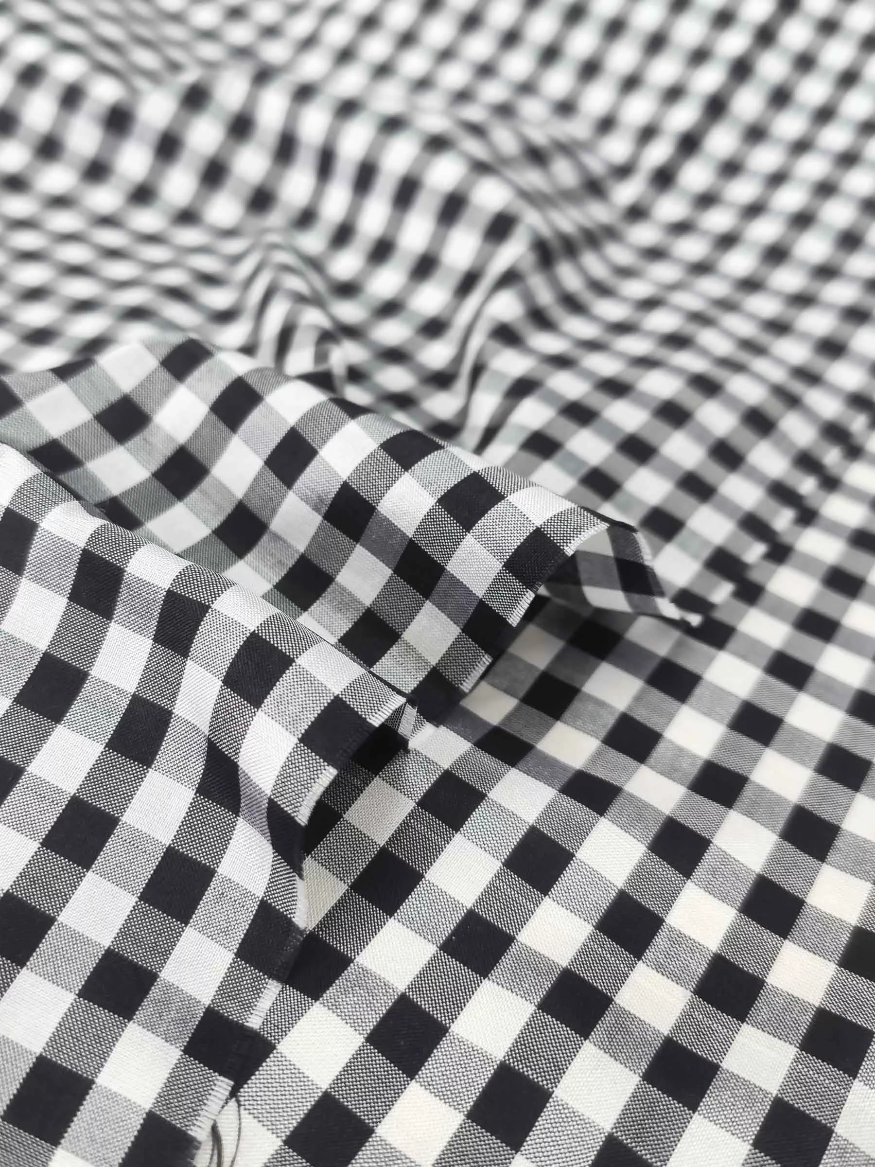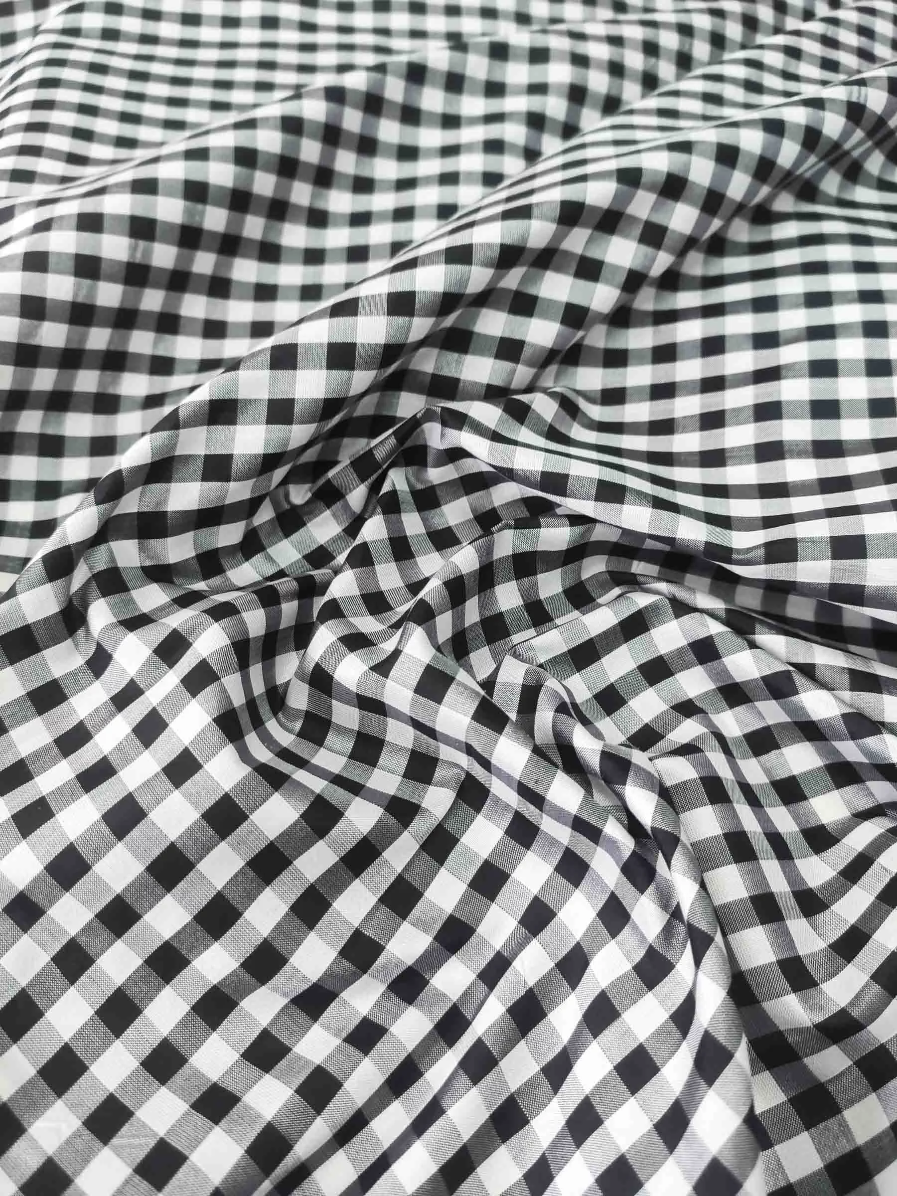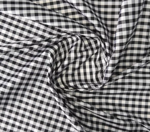 Роскошная шелковая тафта с классическим черно-белым сочетанием в клетку vichy. Тонкая, средней плотности, не просвечивает. Идеальна для самых восхитительных и актуальных платьев, комбинезонов, шорт, блузок, топов, юбок.