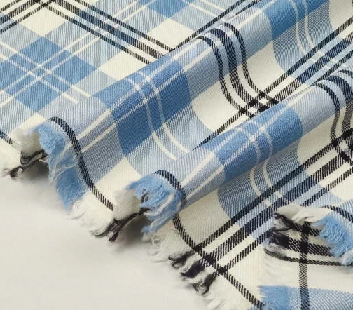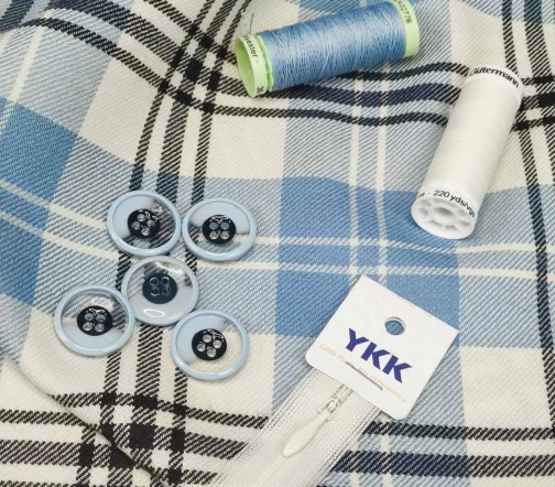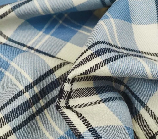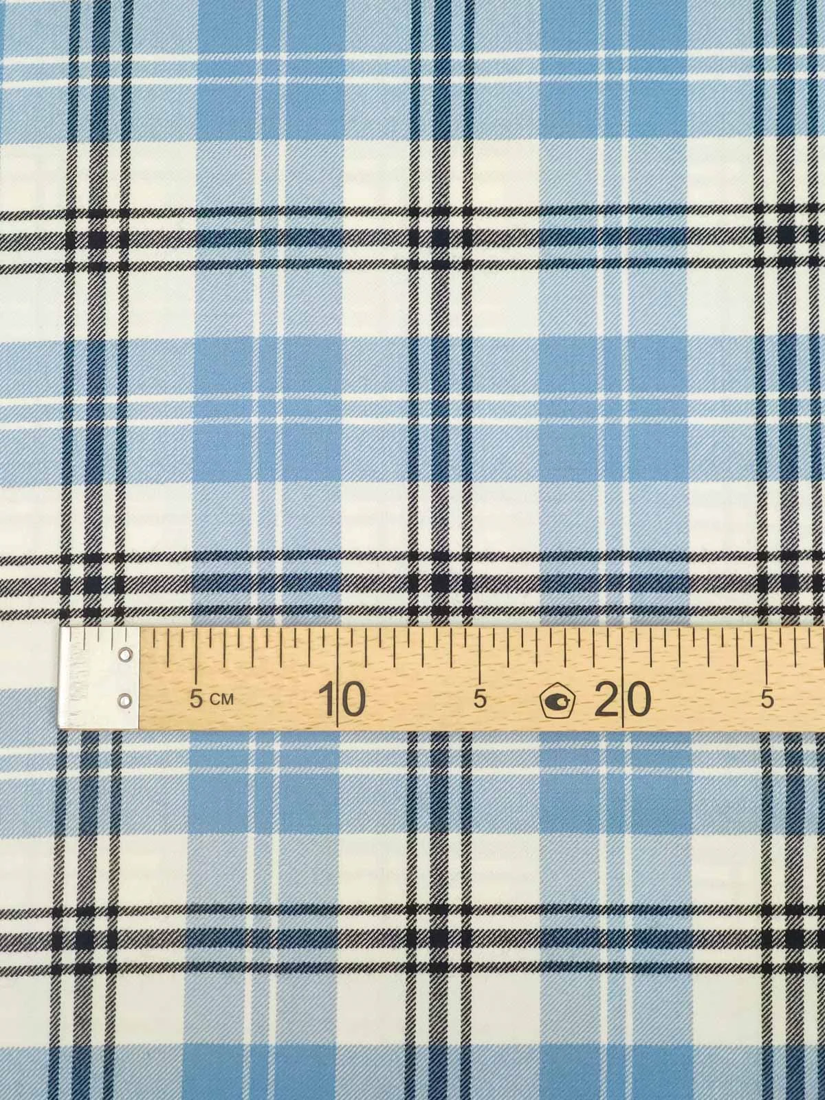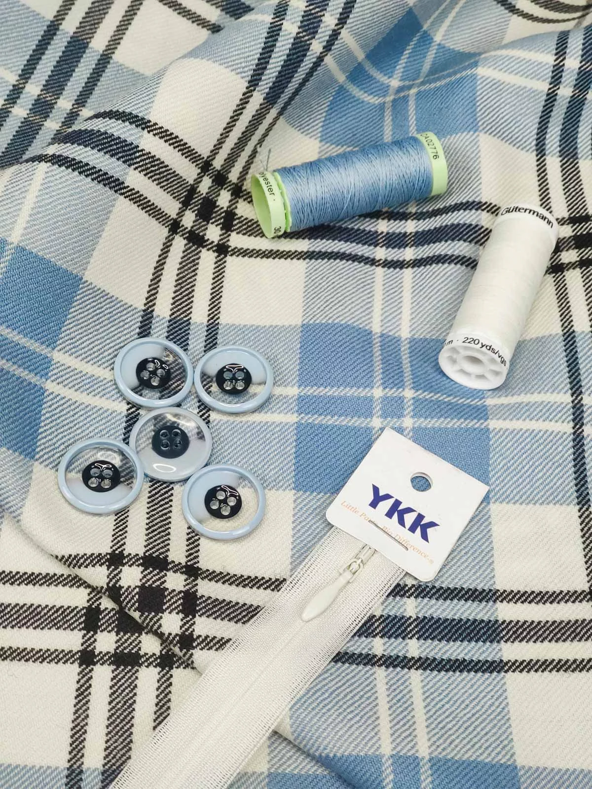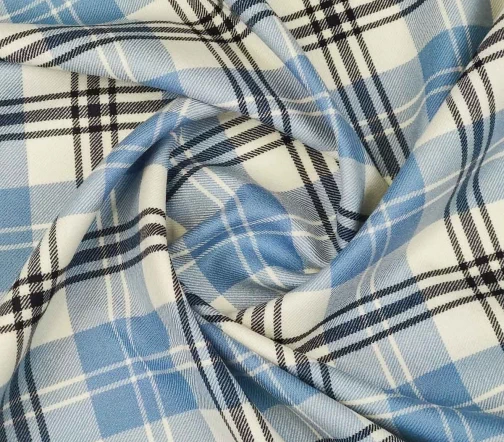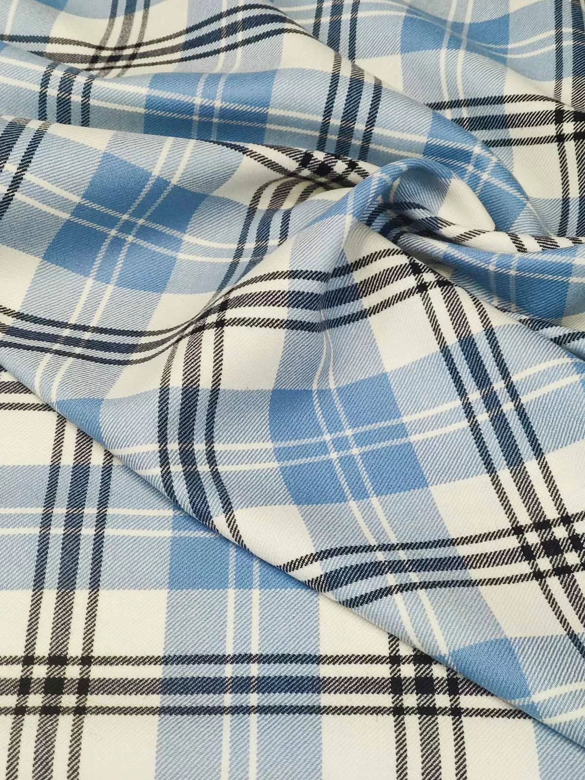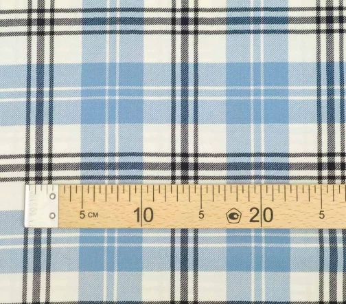 Костюмная клетка в сочетании оттенков голубого, молочного, черного.
