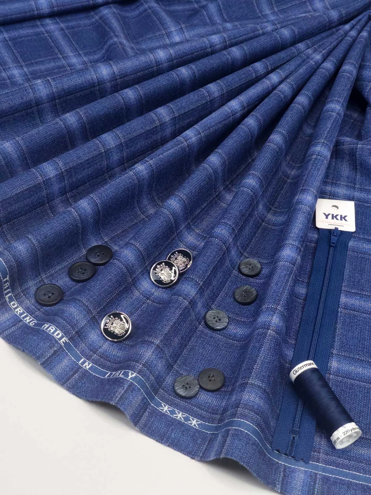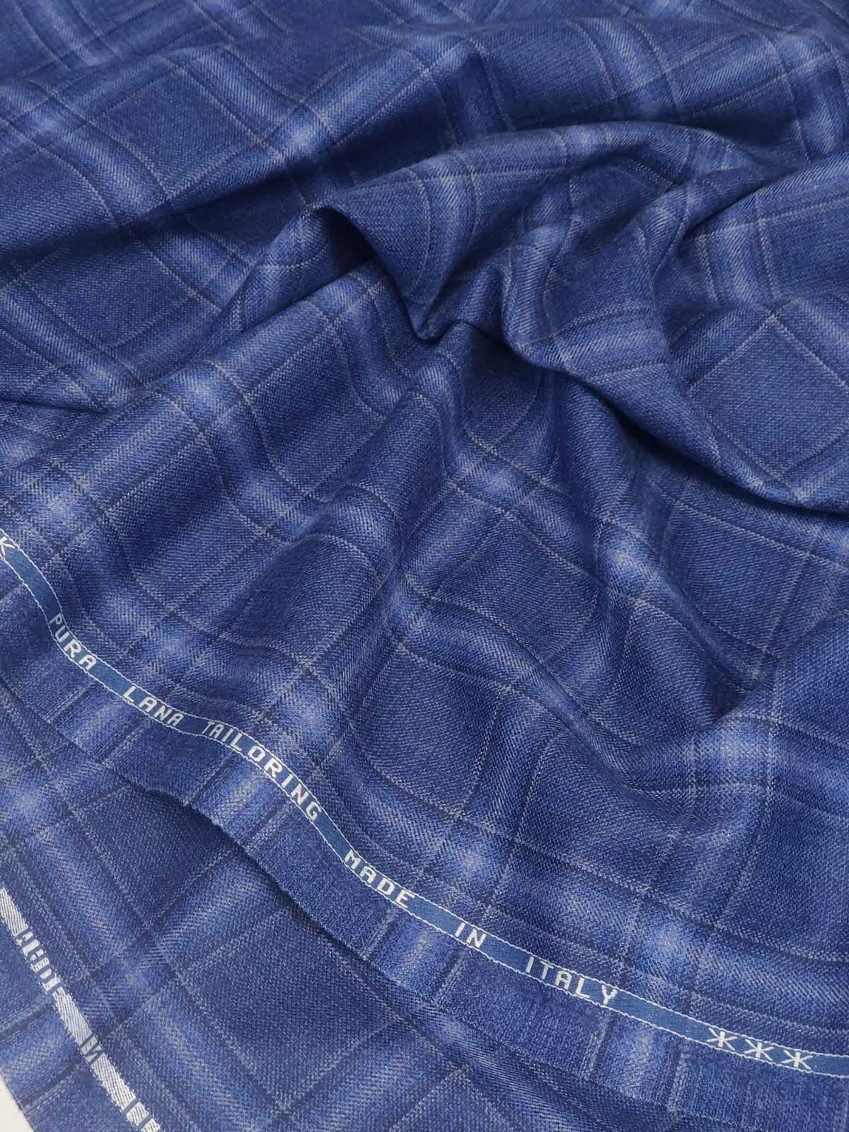 Плательно-костюмная ткань из чистой шерсти (pura lana) в клетку из коллекции Tailoring. Непревзойденное качество и классическое сочетание сине-серых джинсовых оттенков.