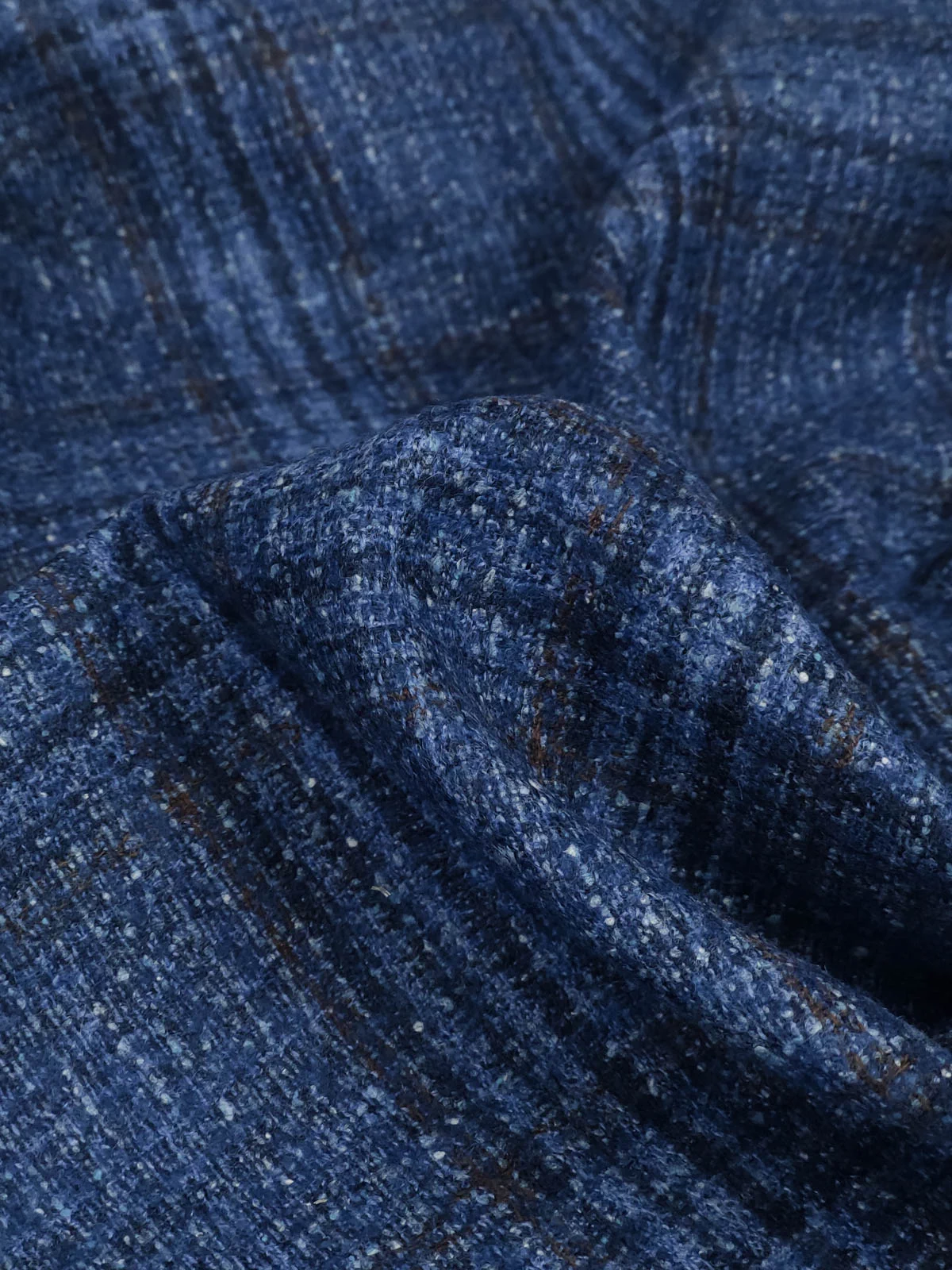 Костюмная ткань в клетку из коллекции Tailoring, выполенная из чистой шерсти (pura lana). Непревзойденное качество и классическое сочетание сине-серых джинсовых и коричневых оттенков. Ткань имеет твидовую структуру.