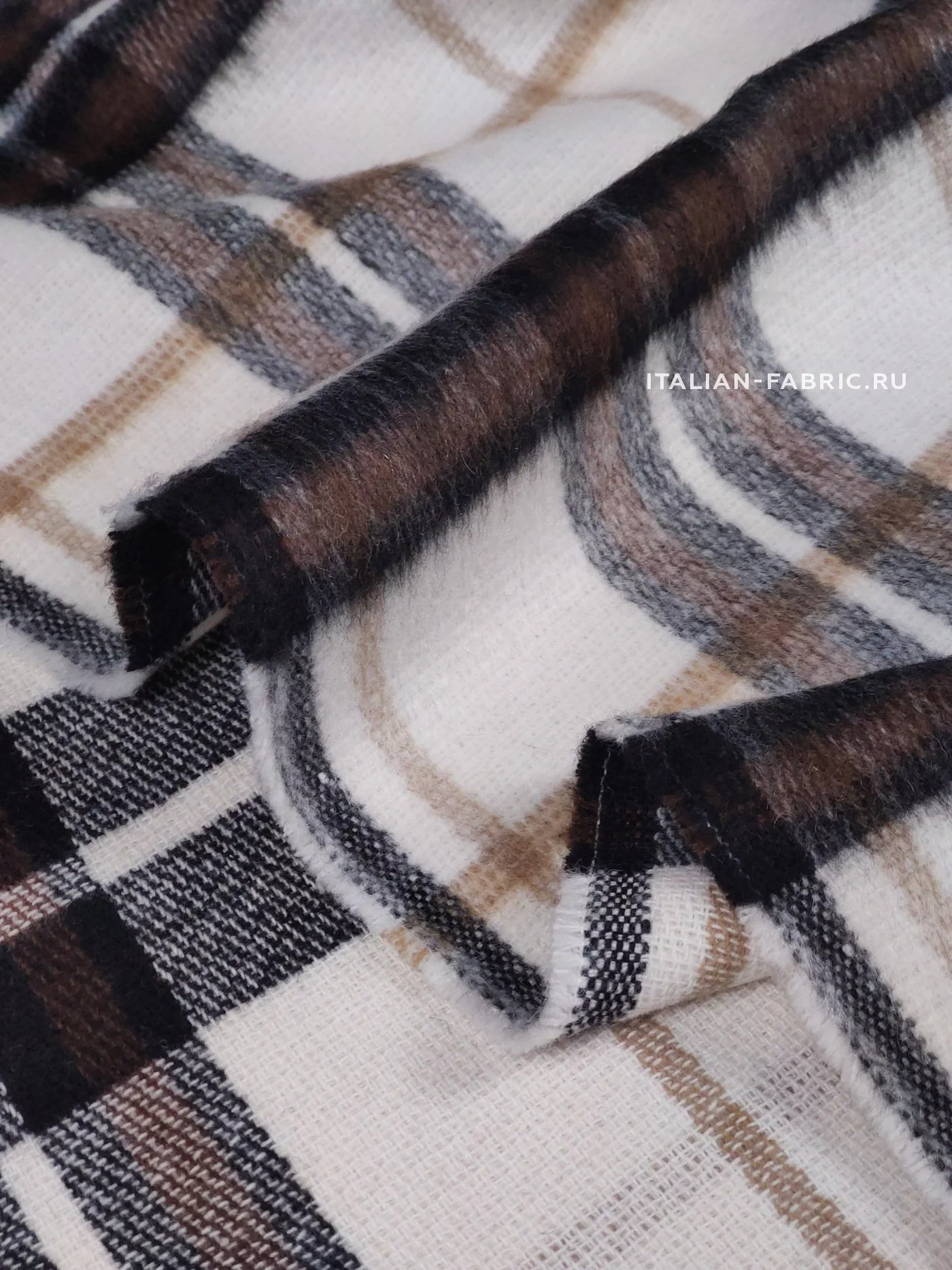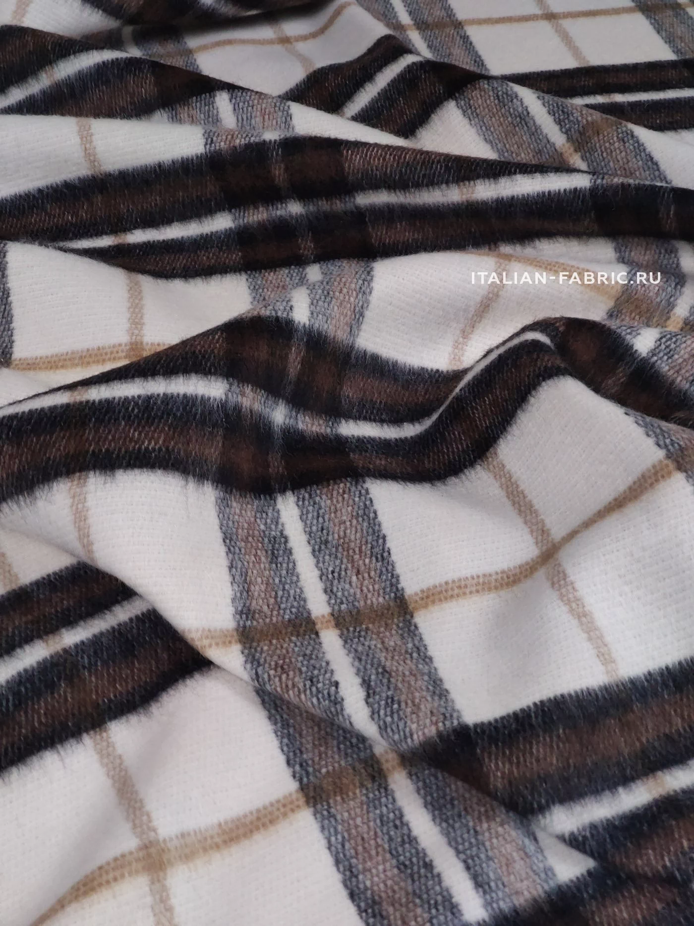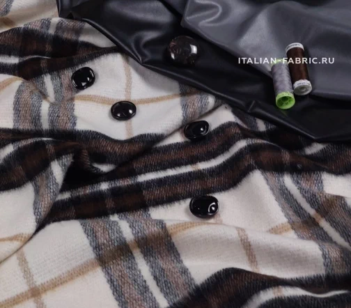 Роскошная,эффектная haute couture шерсть. В классическом нежном сочетании черно-коричневой клетки на молочном фоне. Отличное качество, очень приятная тактильно пальтовая ткань с активной фактурой, самой актуальной в этом сезоне, с небольшим ворсиком.