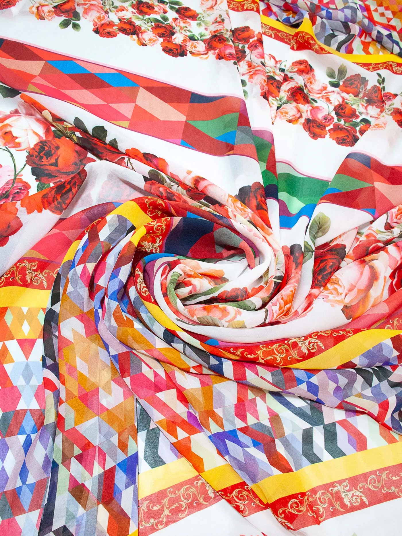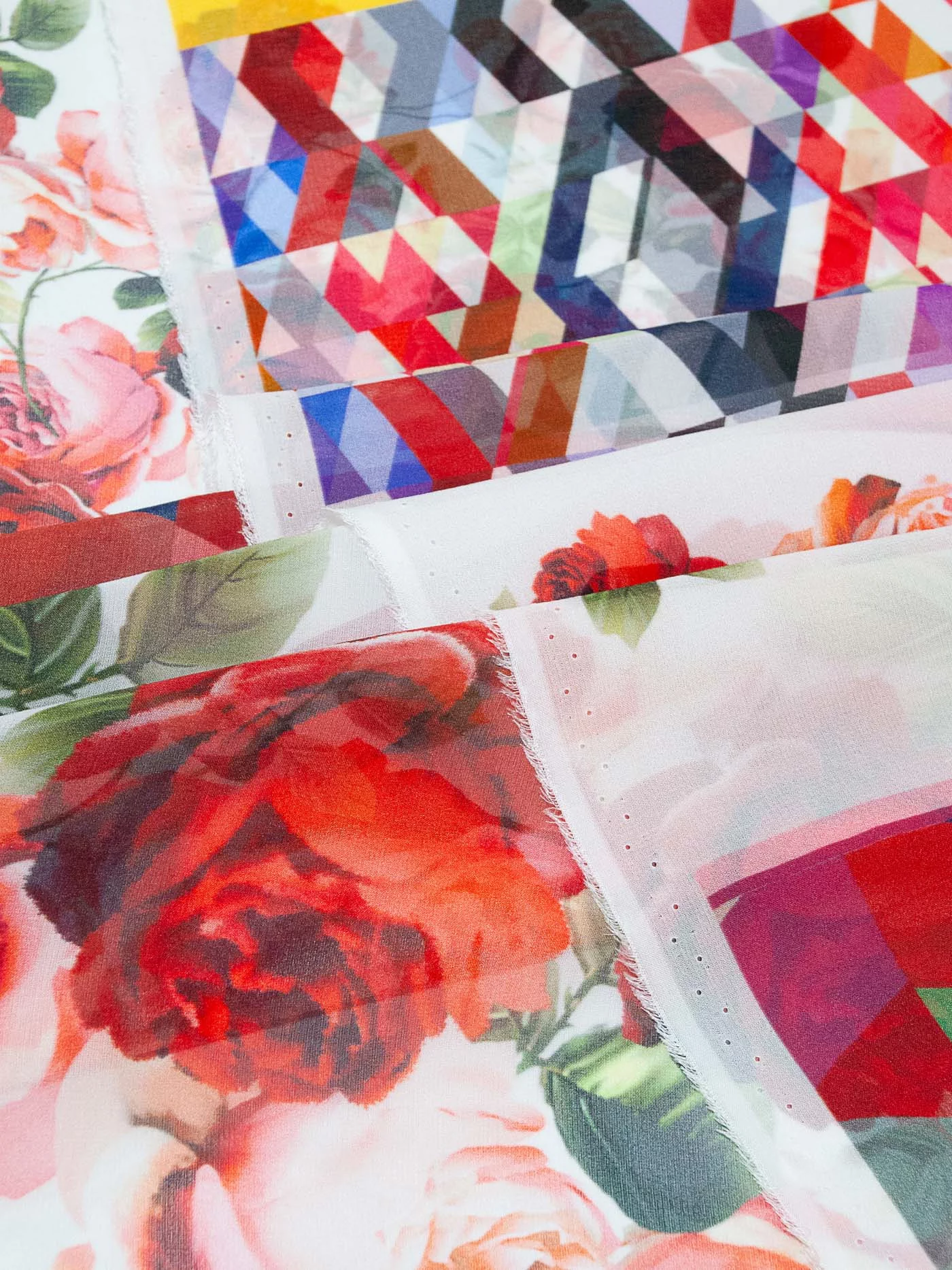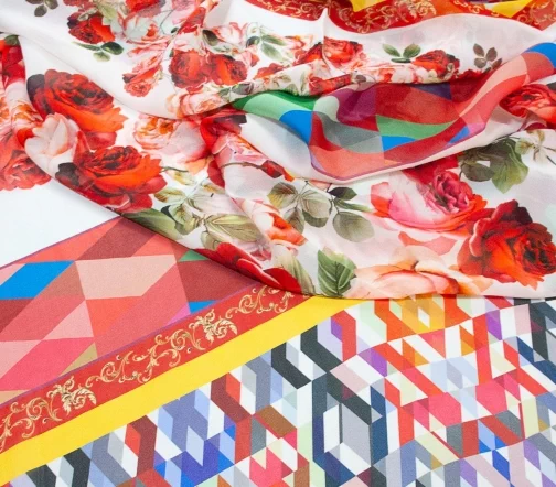 Пожалуй, одна из самых жизнерадостных и культовых коллекций – Mambo. Сочный цветочный принт, вензеля и геометрический узор в стиле итальянской керамики. Самый яркий, эффектный и запоминающийся образ поможет создать шелковый шифон. Великолепное качество и неповторимый стиль материала для ваших изделий – платьев, юбок, блузок, сарафанов, комбинезонов.