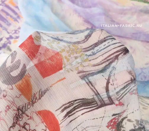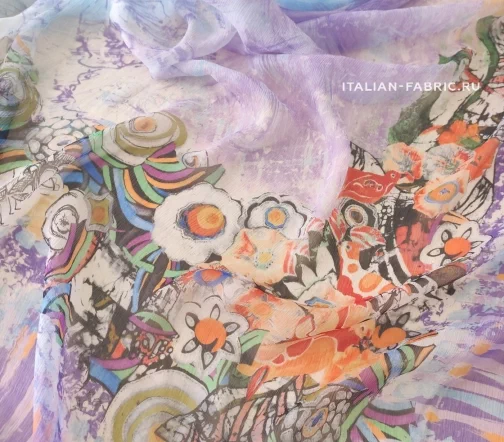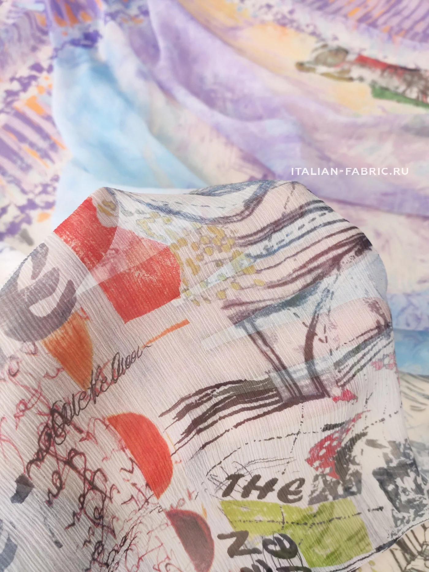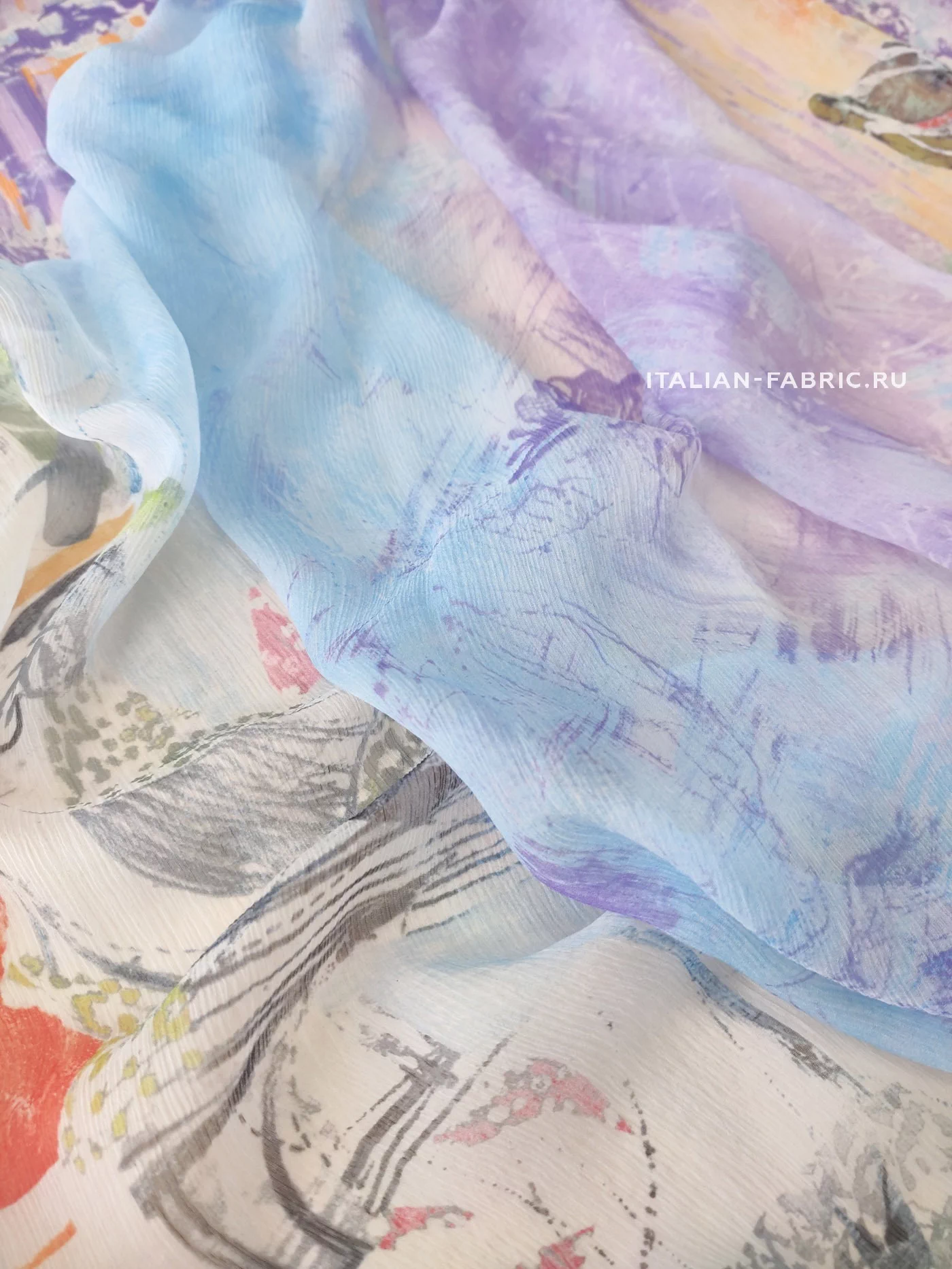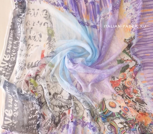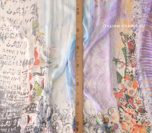 Эксклюзивный подписной шифон Save the Queen. Шелковый материал с оригинальной художественной эстетикой, свойственной итальянскому бренду. Полотно с цветами и птицами в стилистике картин постимпрессионизма богато красками и деталями. Графичные цветы и крупный часто повторяющийся логотип Save the Queen, будто написанные чернилами, придают стильный акцент материалу. Крешированная фактура шифона подчеркивает аутентичный рисунок полотна.