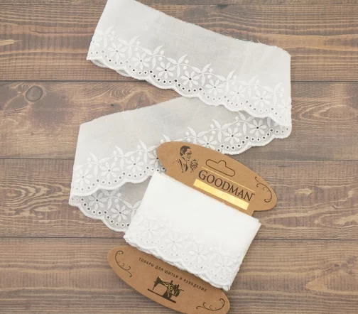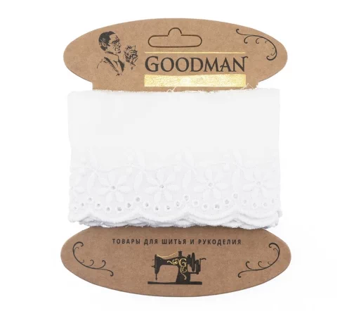 Шитье - вышивка на батисте (прошва) GOODMAN, ширина 70 мм, уп./3,5 м, цвет белый