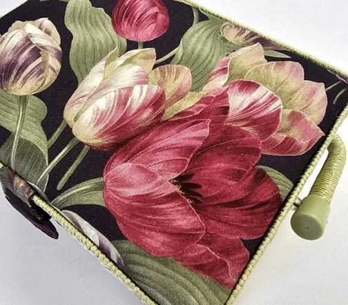 Шкатулка для рукоделия – незаменимый предмет для любой рукодельницы! В ней не только удобно хранить швейные принадлежности и аксессуары, такая шкатулка также станет прекрасным украшением интерьера! А еще это отличная идея для подарка тем, кто увлекается шитьем, вышиванием и другими видами рукоделия. Шкатулка обтянута тканью из 100% хлопка, имеет плетеную ручку для переноски и оплетку по периметру крышки. Внутри шкатулки на крышке закреплена подушечка для хранения игл, а также имеется внутренний контейнер из пластика с отделениями для хранения мелких аксессуаров.