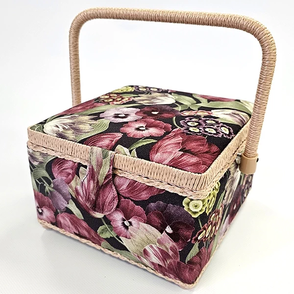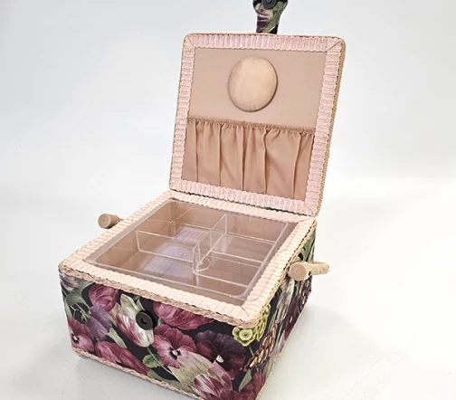 Шкатулка для рукоделия – незаменимый предмет для любой рукодельницы! В ней не только удобно хранить швейные принадлежности и аксессуары, такая шкатулка также станет прекрасным украшением интерьера! А еще это отличная идея для подарка тем, кто увлекается шитьем, вышиванием и другими видами рукоделия. Шкатулка обтянута тканью из 100% хлопка, имеет плетеную ручку для переноски и оплетку по периметру крышки. Внутри шкатулки на крышке закреплена подушечка для хранения игл, а также имеется внутренний контейнер из пластика с отделениями для хранения мелких аксессуаров.