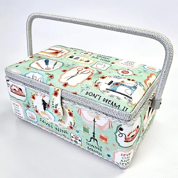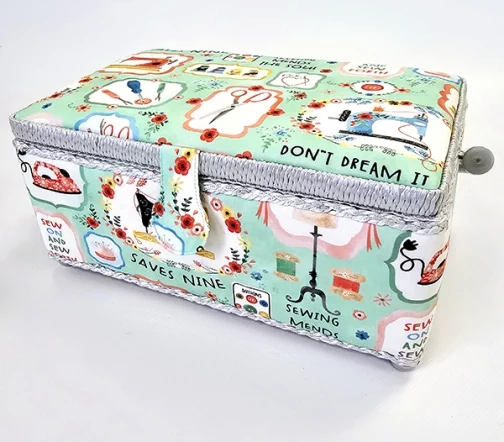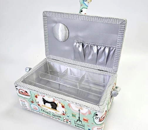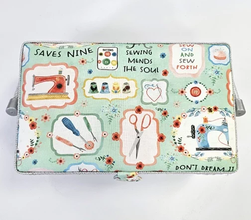 Шкатулка для рукоделия – незаменимый предмет для любой рукодельницы! В ней не только удобно хранить швейные принадлежности и аксессуары, такая шкатулка также станет прекрасным украшением интерьера! А еще это отличная идея для подарка тем, кто увлекается шитьем, вышиванием и другими видами рукоделия. Шкатулка обтянута тканью из 100% хлопка, имеет плетеную ручку для переноски и оплетку по периметру крышки. Внутри шкатулки на крышке закреплена подушечка для хранения игл, а также имеется внутренний контейнер из пластика с отделениями для хранения мелких аксессуаров.