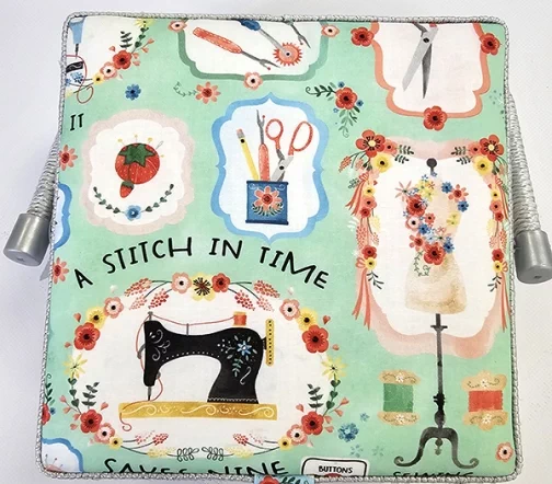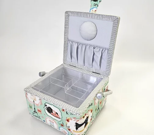 Шкатулка для рукоделия – незаменимый предмет для любой рукодельницы! В ней не только удобно хранить швейные принадлежности и аксессуары, такая шкатулка также станет прекрасным украшением интерьера! А еще это отличная идея для подарка тем, кто увлекается шитьем, вышиванием и другими видами рукоделия. Шкатулка обтянута тканью из 100% хлопка, имеет плетеную ручку для переноски и оплетку по периметру крышки. Внутри шкатулки на крышке закреплена подушечка для хранения игл, а также имеется внутренний контейнер из пластика с отделениями для хранения мелких аксессуаров.