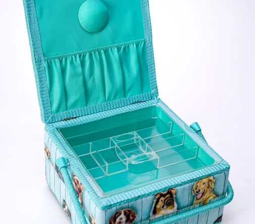 Шкатулка для рукоделия – незаменимый предмет для любой рукодельницы! В ней не только удобно хранить швейные принадлежности и аксессуары, такая шкатулка также станет прекрасным украшением интерьера! А еще это отличная идея для подарка тем, кто увлекается шитьем, вышиванием и другими видами рукоделия. Шкатулка обтянута тканью из 100% хлопка, имеет плетеную ручку для переноски и оплетку по периметру крышки. Внутри шкатулки на крышке закреплена подушечка для хранения игл, а также имеется внутренний контейнер из пластика с отделениями для хранения мелких аксессуаров.