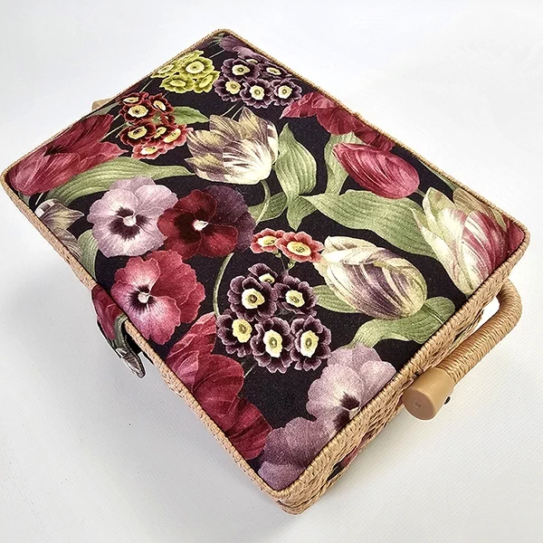 Шкатулка "Анютины глазки крупные", розовая оплетка, 24,5 x 18 x 12,5 см, 4287-RT-13
