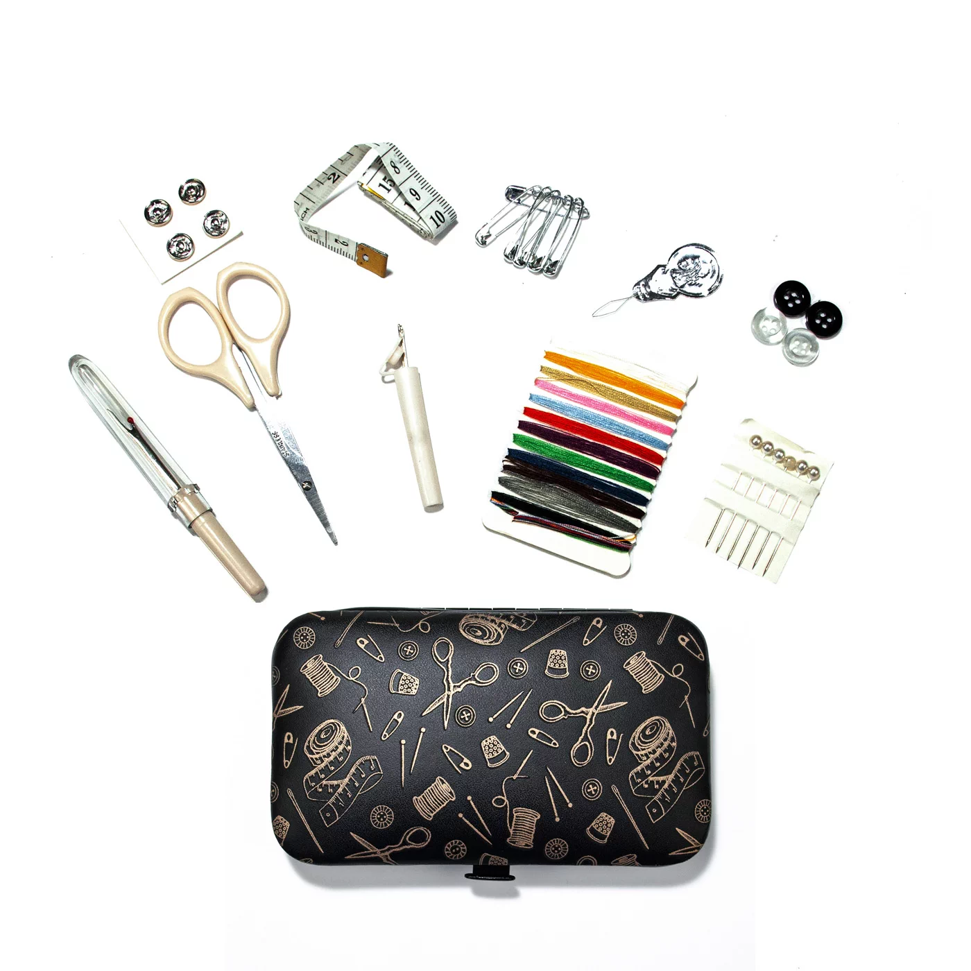 4921.HG Швейный набор в футляре из иск.кожи, цвет черный/золото, Hemline