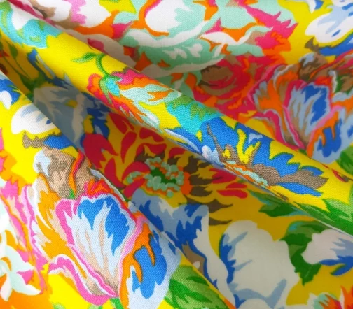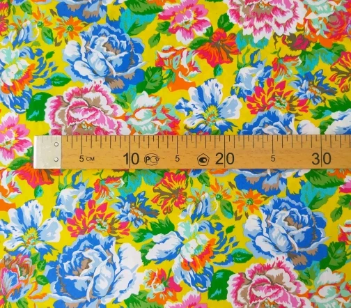Основной фон ярко-желтый. Не просвечивает. Великолепного качества ситец из длинноволокнистого хлопка марки Liberty (Великобритания). Для пошива любых летних изделий, а также сорочек, батников и таких модных в этом сезоне платья-сорочек.