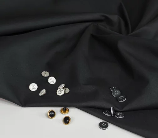 Однотонный сорочечный хлопок натурального черного цвета. Средней плотности, ближе к тонкому. Лёгкий, пластичный, безупречного качества. Для пошива базовых блуз, рубашек, платьев-рубашек.