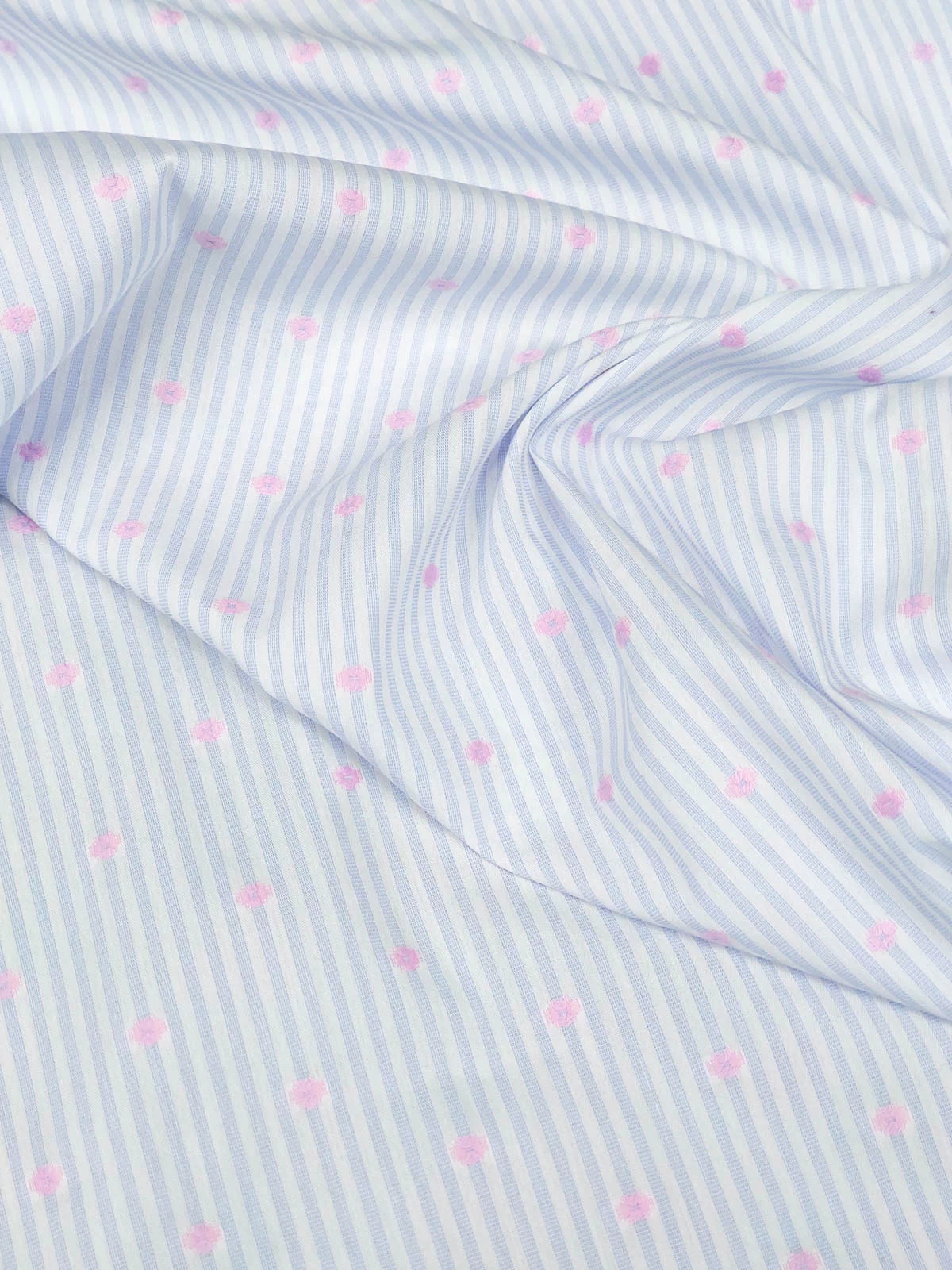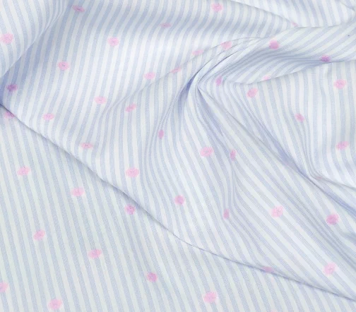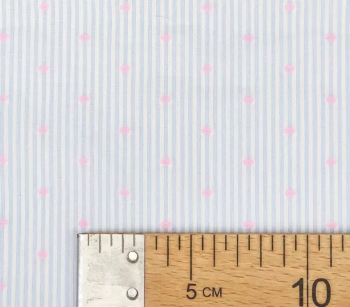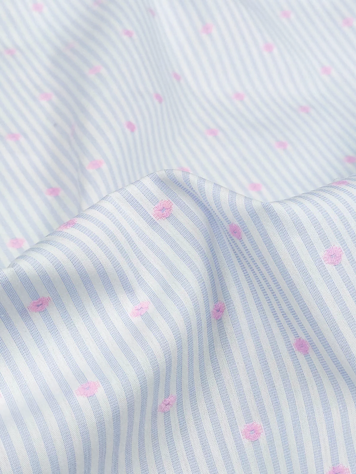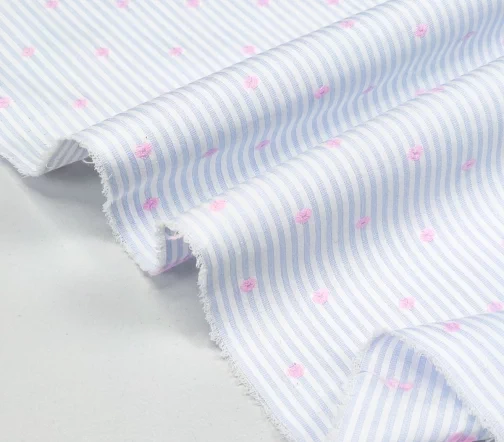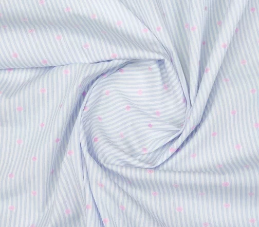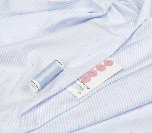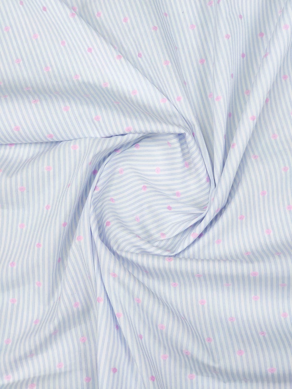 Тонкий хлопок в голубую полоску с акцентными розовыми вышитыми "точечками".
