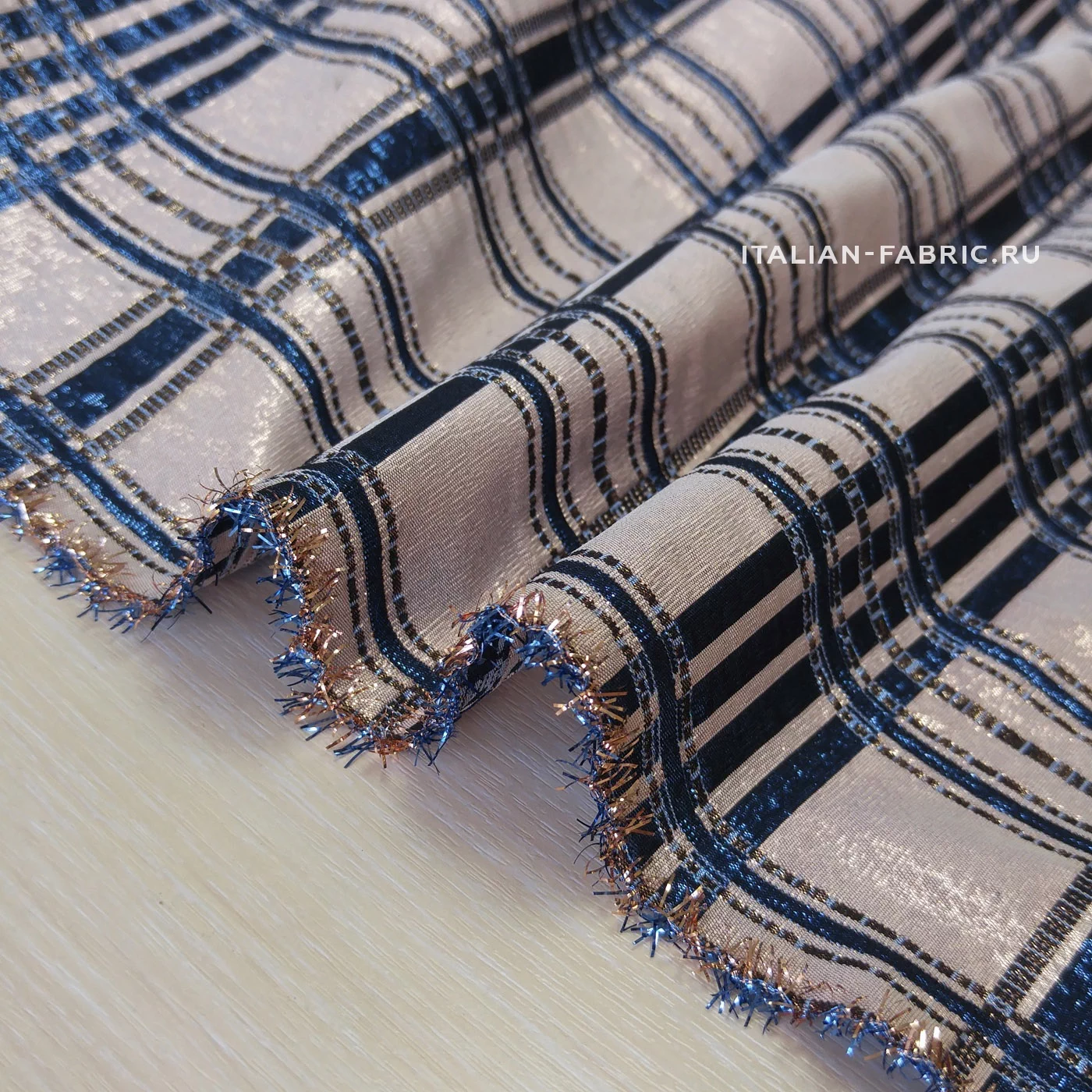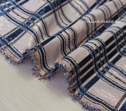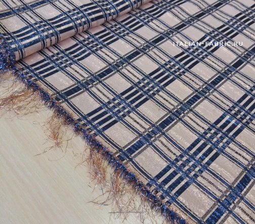 Тафта с глянцевым блеском и нитями люрекса в великолепном сочетании розово-бежевого и синего цветов на узоре в клетку. ️Очень красивый и выразительный материал хорошо держит форму, драпируется красивыми жесткими складками и идеально подходит для праздничных платьев. Из-за высокой плотности тафта не впитывает воду, а отталкивает ее, поэтому станет отличным материалом для исполнения оригинальных летних плащей. Ткань отличается долговечностью и износостойкостью.