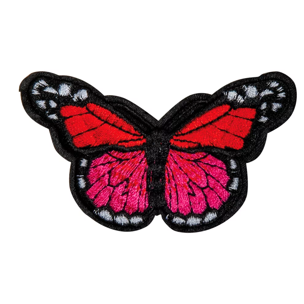 Термоаппликация HKM "Бабочка розово-красно-черная большая", 7,7 х 4,3 см, 39251