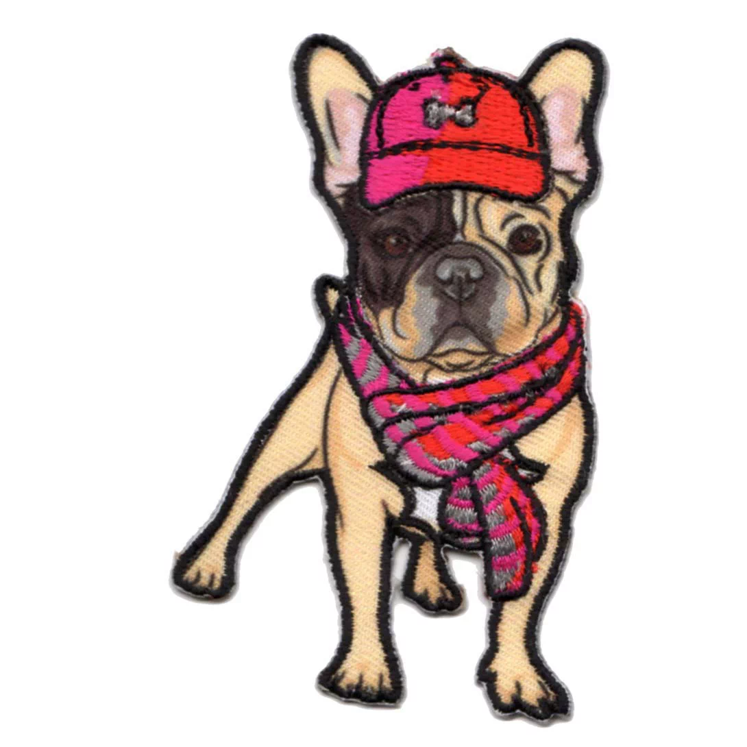 Термоаппликация HKM "Французский бульдог в кепке и шарфе", 8,5 х 5 см, арт. 33142