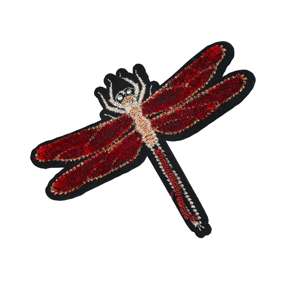 Термоаппликация HKM с эффектом шенил "Стрекоза", 6,8 х 8,5 см, цвет бордовый, 36008