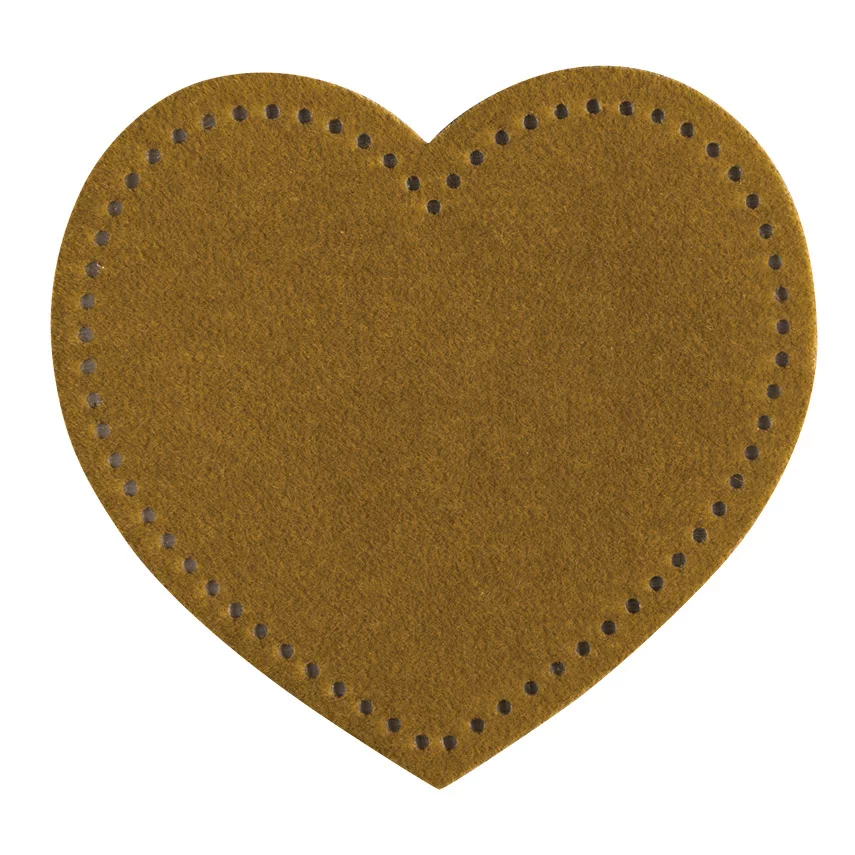 Термоаппликация HKM "Сердце из замши горчичное", 6,4 х 6,0 см, 43154
