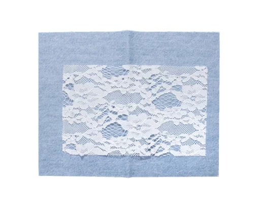 Готовые термозаплатки из джинсы с кружевом придают индивидуальность одежде, фиксируют рваные края, предотвращая дальнейшее расползание дырки.
