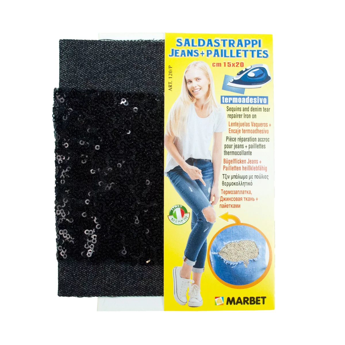 Готовые термозаплатки из джинсы с пайетками придают индивидуальность одежде, фиксируют рваные края, предотвращая дальнейшее расползание дырки.