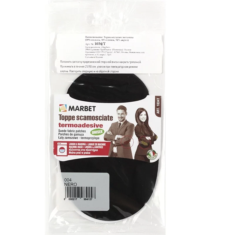 Размер 16 х 10,5 см. Состав: 52% акрил 30% хлопок 18% вискоза. В блистере 2 шт. Заплатки повторяют элегантную структуру настоящей замши. Цвета не подвержены изменениям. Рекомендованы для ремонта верхней и трикотажной одежды (пиджаков, кардиганов, пальто, курток) в области локтей. Дополнительно заплатку можно пришить (контрастным цветом нити или в тон), используя подготовленные отверстия по краям.